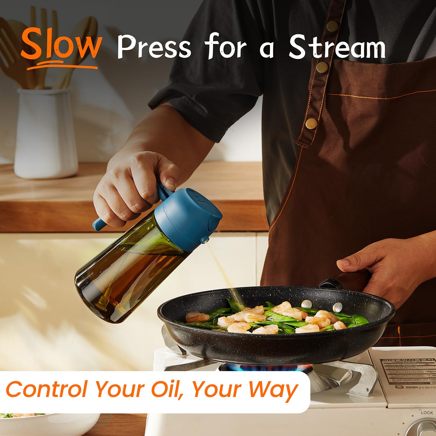 Versatile Kitchen Tool: Combining the convenience of pouring and spraying in one bottle, this multifunctional design streamlines your cooking process. Whether you need a precise cooking spray for air frying or a controlled pour for stir-fries, it’s a practical addition to your kitchen appliances, keeping your kitchen clean and efficient