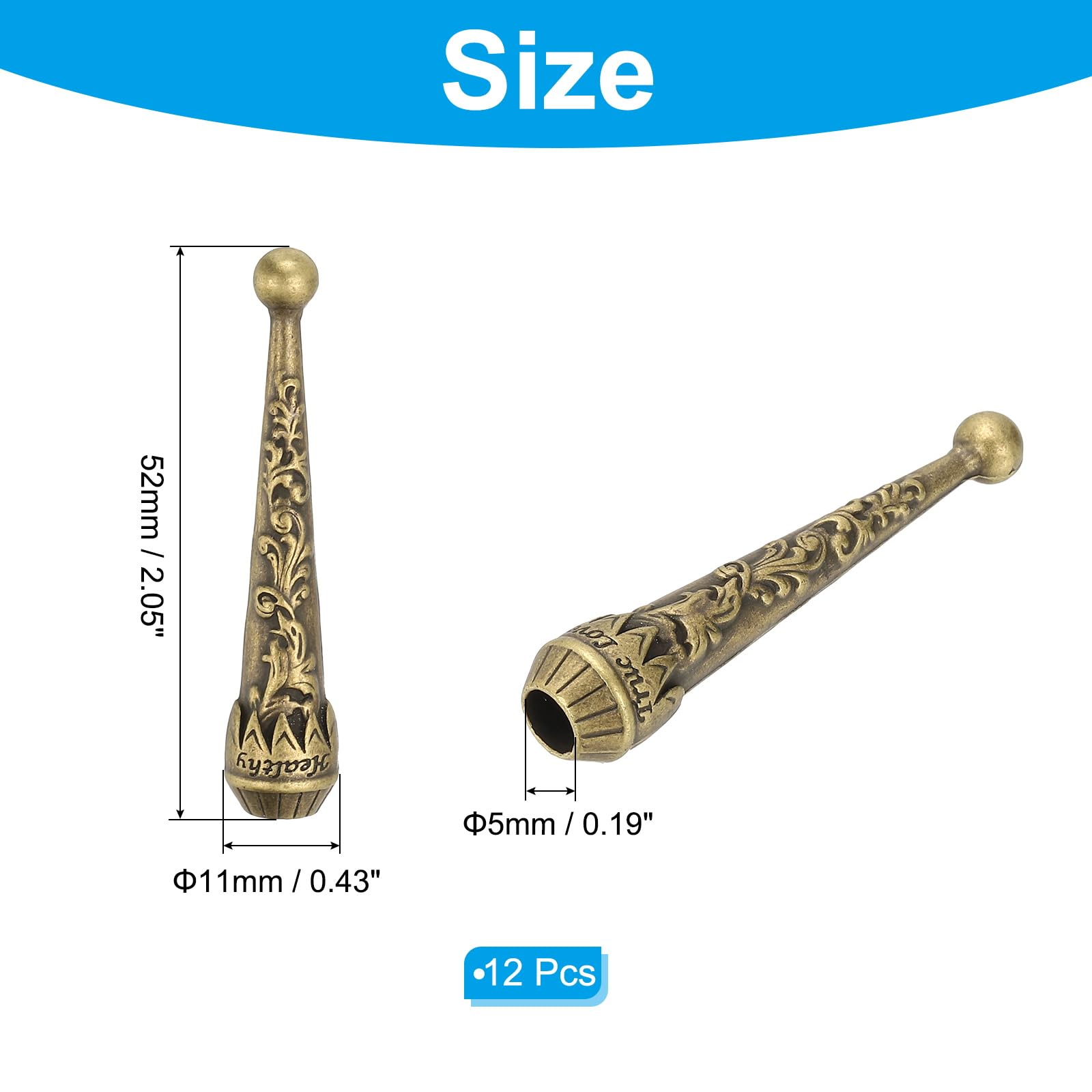 Color: Vintage Bronze; Material: Alloy; Hole Inner Diameter: 5.5mm / 0.22 Inch; Length: 52mm / 2.05 Inch; Width: 11mm / 0.43 Inch; Packing List: 12 x Bolo Tie Tips