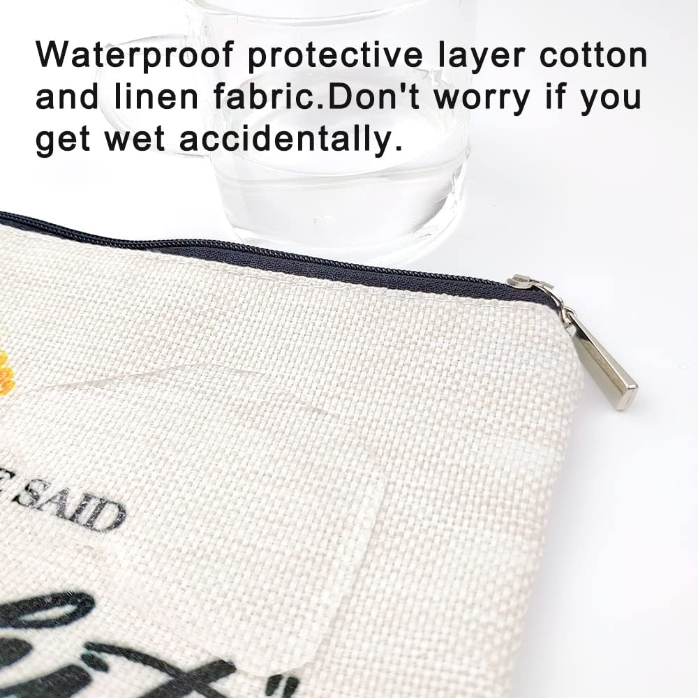 Description Material : Made of Waterproof material and linen., these cosmetic pouches are durable yet lightweight, practical and portable; quality zipper makes the inner items secure. Funny Makeup Bag: Birthday Gifts for Women, Coworkers, Friends, Bestie, Sister, Daughter.