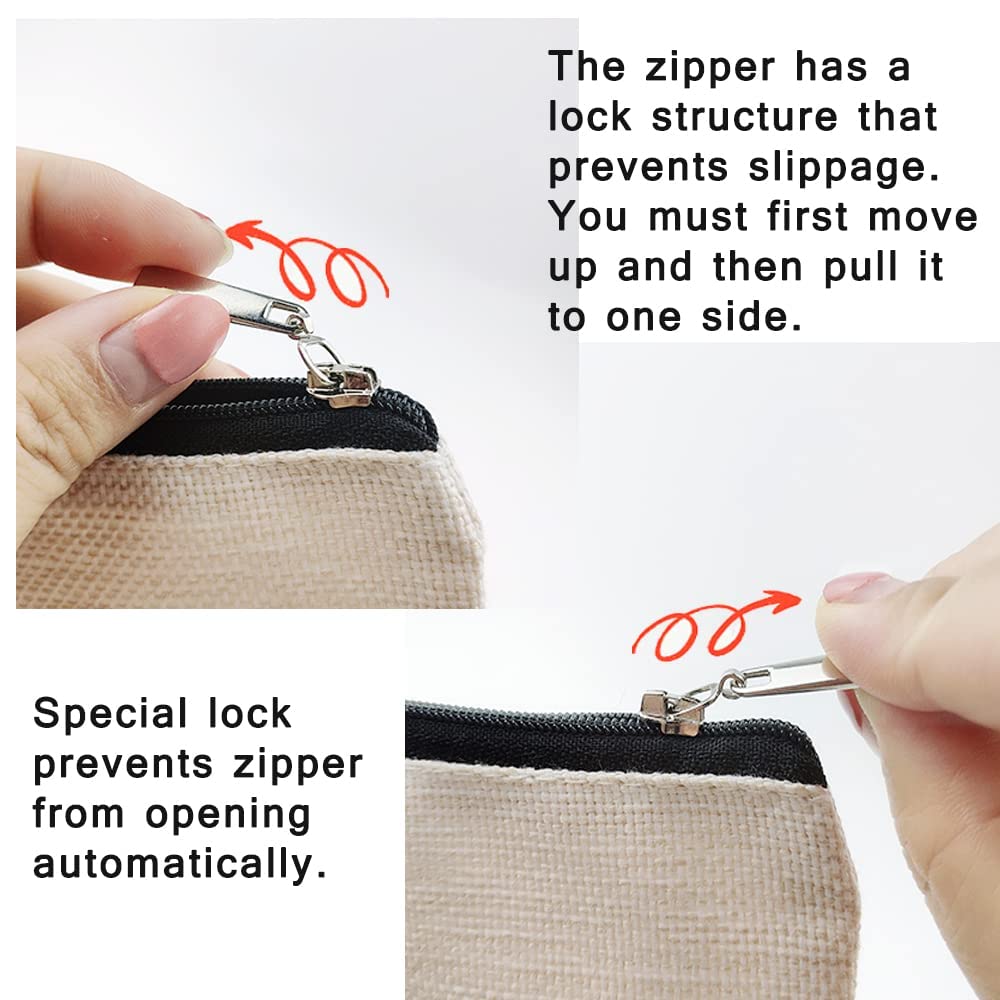 Makeup Bags Color: Double-sided printied; Natural Beige, featuring a sleek black zipper with a silver pull.