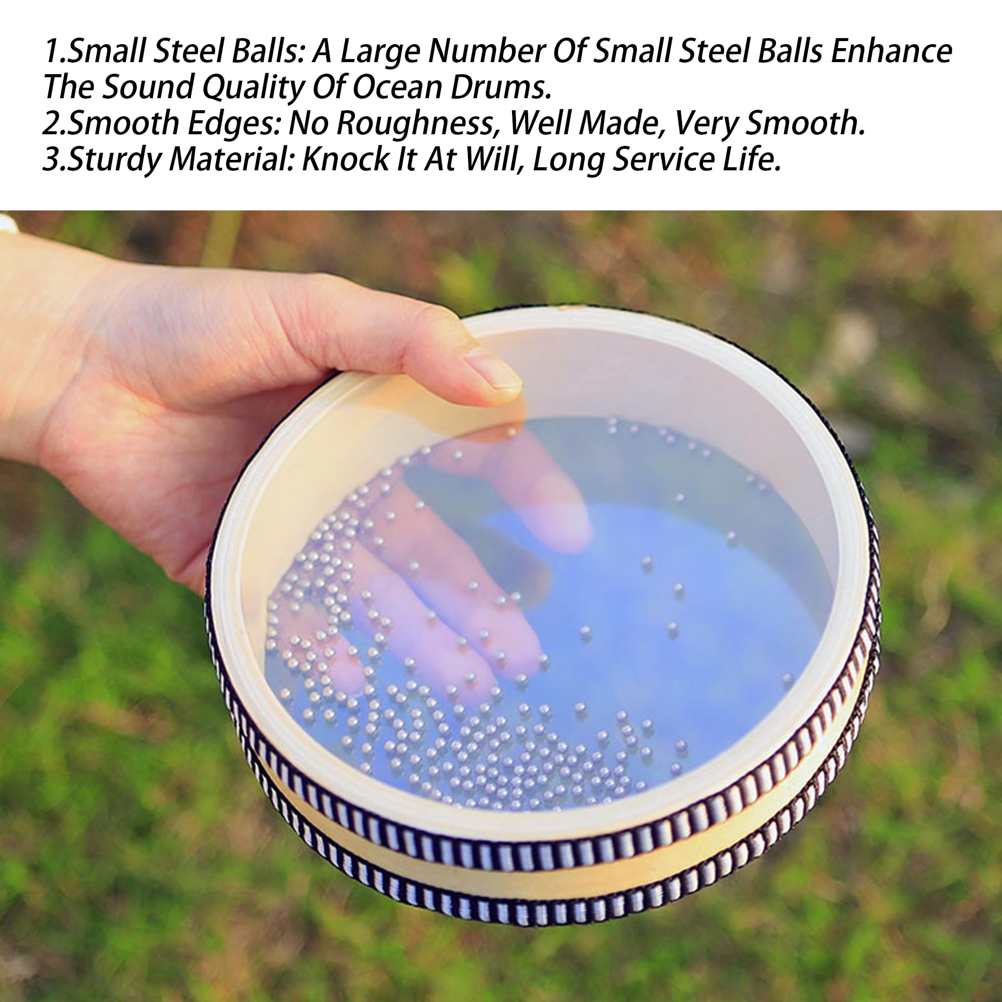 ♬【Usage Reminder】: The sound quality of this product mainly depends on how hard you shake it and the effect of using it with other instruments. When you use the ocean drum alone, you can choose to shake it gently; when you use it with other instruments , you can choose the shaking level according to the type of music,Note that the eardrum of the product is very thin, do not use excessive force when using the product