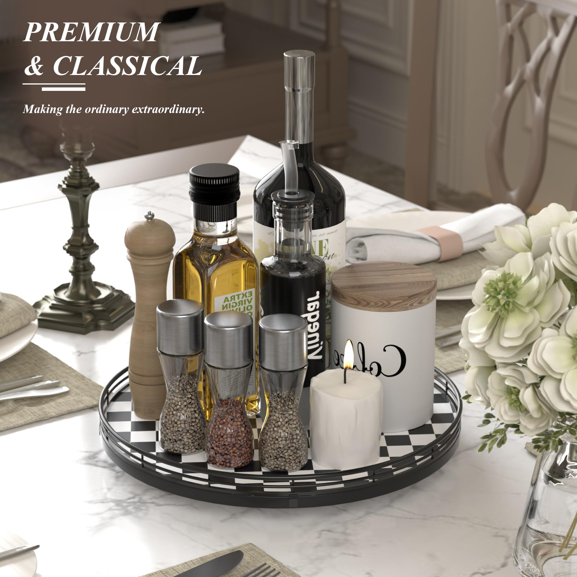 QUALITY CRAFTSMANSHIP & STYLE – Built with a durable checkered oakwood base and iron frame. From a black check serving tray to a cute lazy susan for table top, it blends seamlessly with modern pottery barn decor styles.