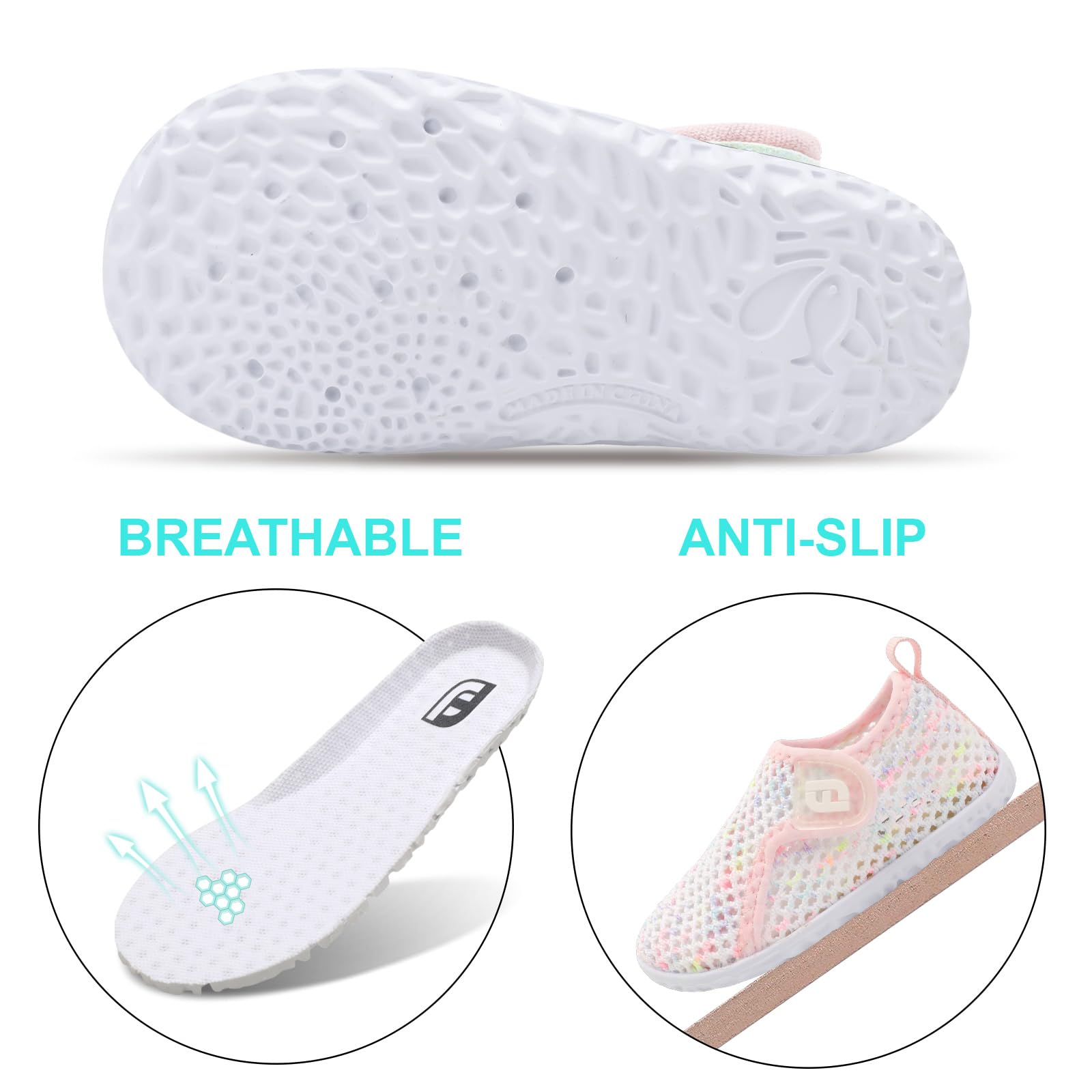 Breathable Materials: Baby Water Shoes are made of high-quality soft stretchy fabric, quick-drying and lightweight, offers comfortable and excellent wearing experience for your child