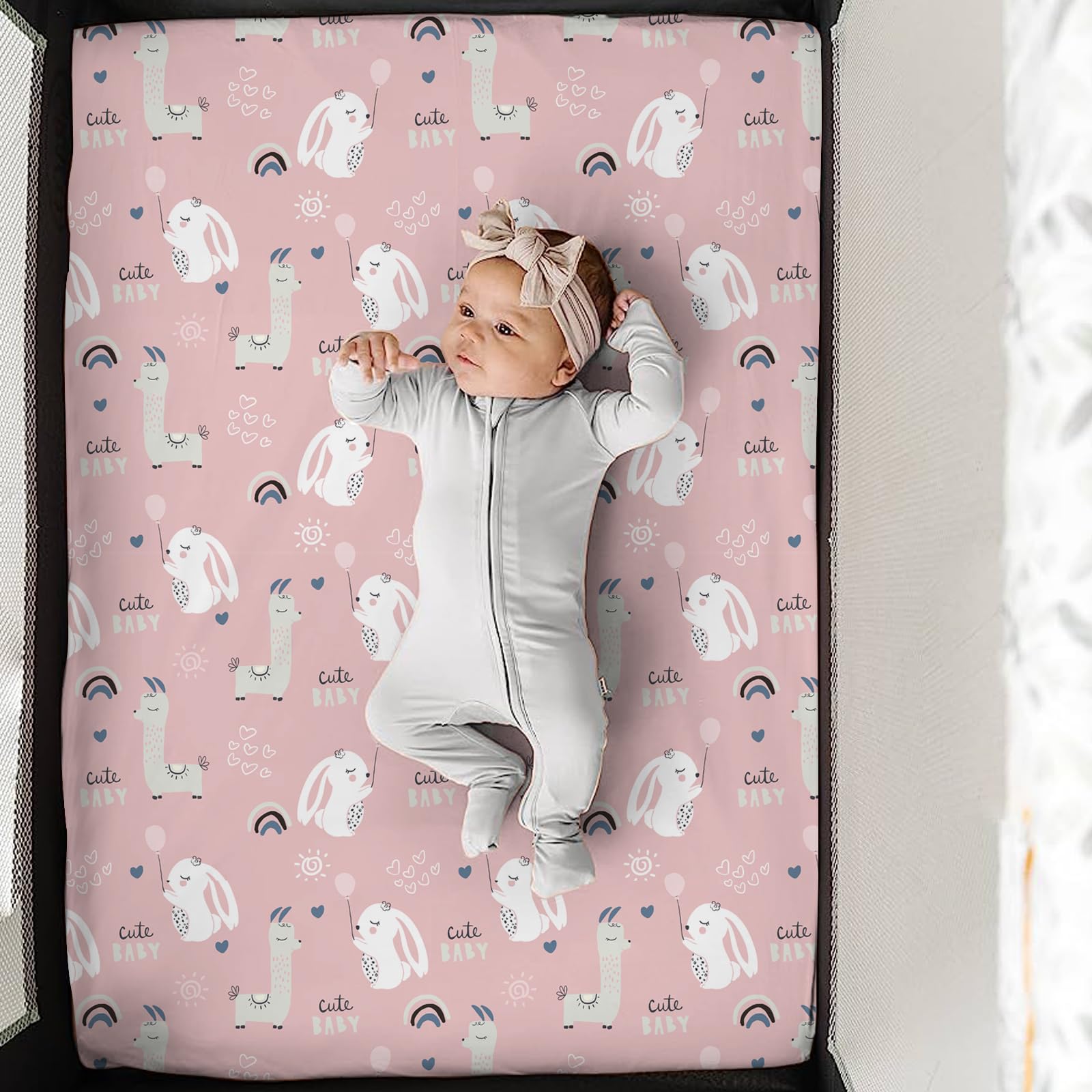 BREATHABLE MINI CRIB SHEETS FOR NEWBORN & INFANT: Crafted with breathable materials, these Pack and Play sheets help regulate your baby's temperature, ensuring a comfortable sleep all night long. Perfect for moms and parents who want a safe and eco-friendly option for their baby boy or girl, whether in the nursery, during travel, or at daycare.