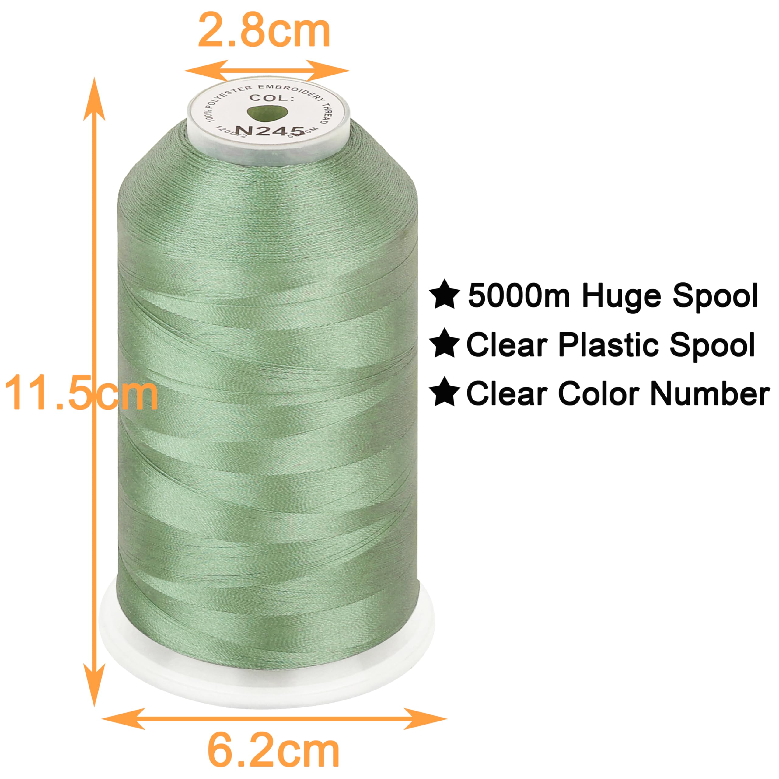 ★★ Ideal Weight and Huge Spool - Each Spool is 40 W.T. (120D/2) in thickness and 5000M (5500Y) in length, which makes these spools of polyester embroidery machine thread ideal for All Embroidery Machines including Home based, Semi-industrial, Industrial and Commercial Embroidery Machines. (Note: home based machine users MUST use an upright thread stand/holder to help feeding our 5000m embroidery threads to your machine properly!)