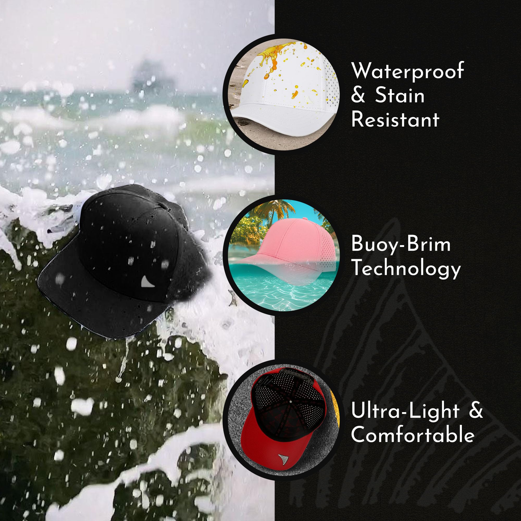 UNSINKABLE BUOY-BRIM TECHNOLOGY: Our innovative waterproof cap for men features a Buoy-Brim Technology that keeps it afloat if dropped in water, making it the ultimate water-resistant hat for outdoor activities. Whether you're hitting the beach or enjoying water sports, our hat ensures peace of mind. This floating hat is the ideal choice for anyone in need of a mens waterproof hat.