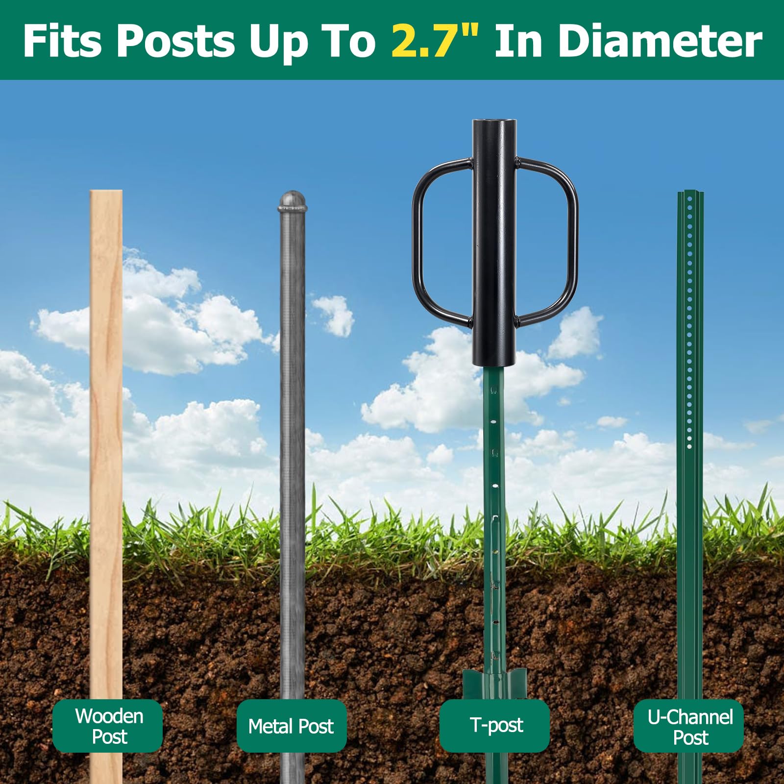 Versatile & Professional: Works on T-posts, U-posts, wood, and metal—any post up to 2.7” thick. Perfect for gardens, orchards, farms, and pastures.