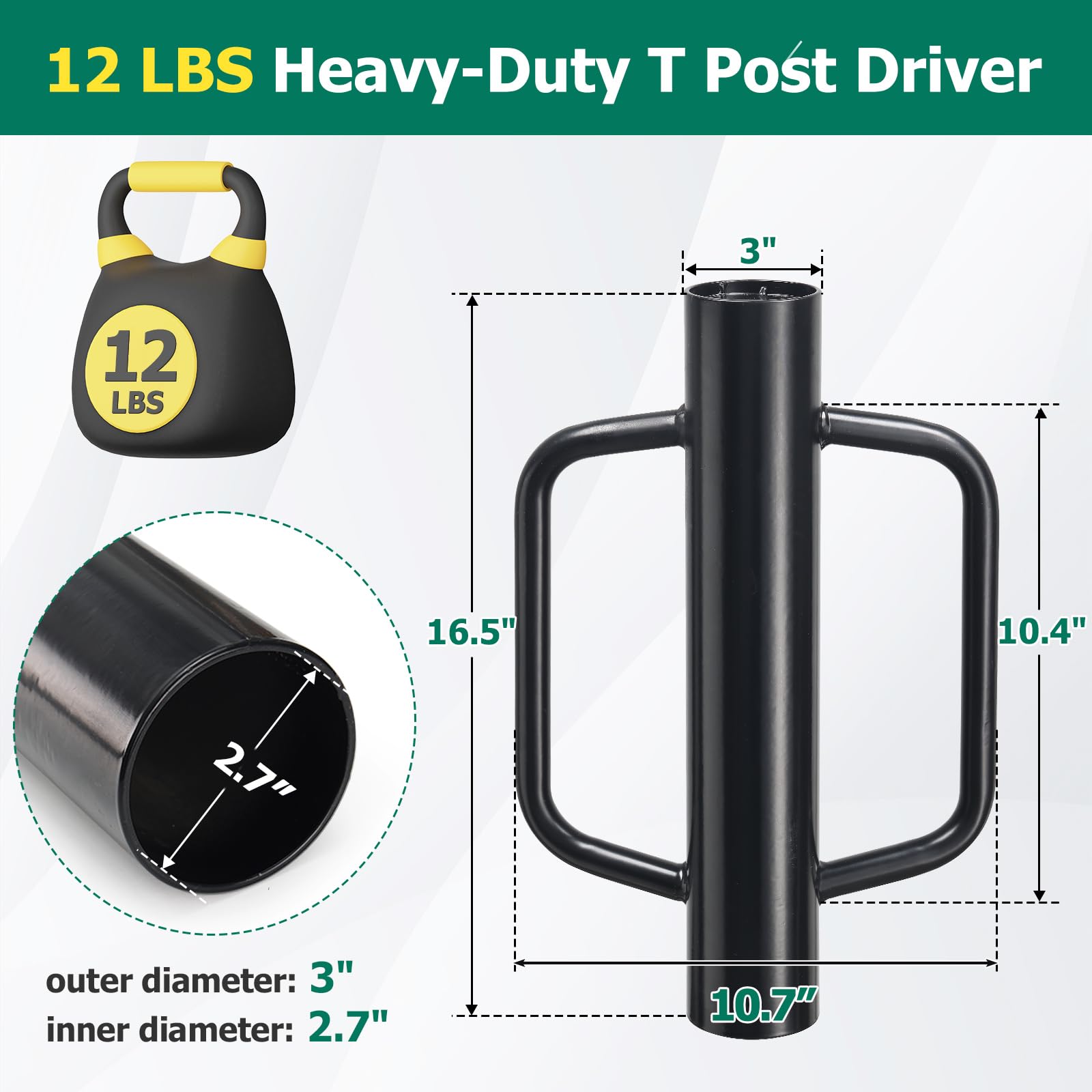 Compact & Easy to Use: The 16.5” fence post driver weighs 12 lbs. Its lightweight post pounder design requires much less effort than bulky models, making it easy for anyone to handle.