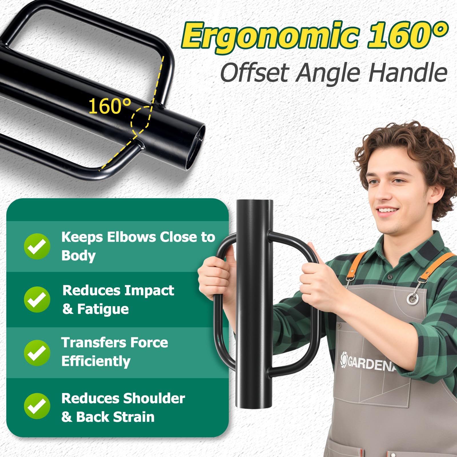 Ergonomic & Shoulder-saver: Angled loop handles on this T post driver keep your elbows in, allowing better center of gravity for the user, transferring power to the post—not strain to your shoulders. Work longer with less fatigue.