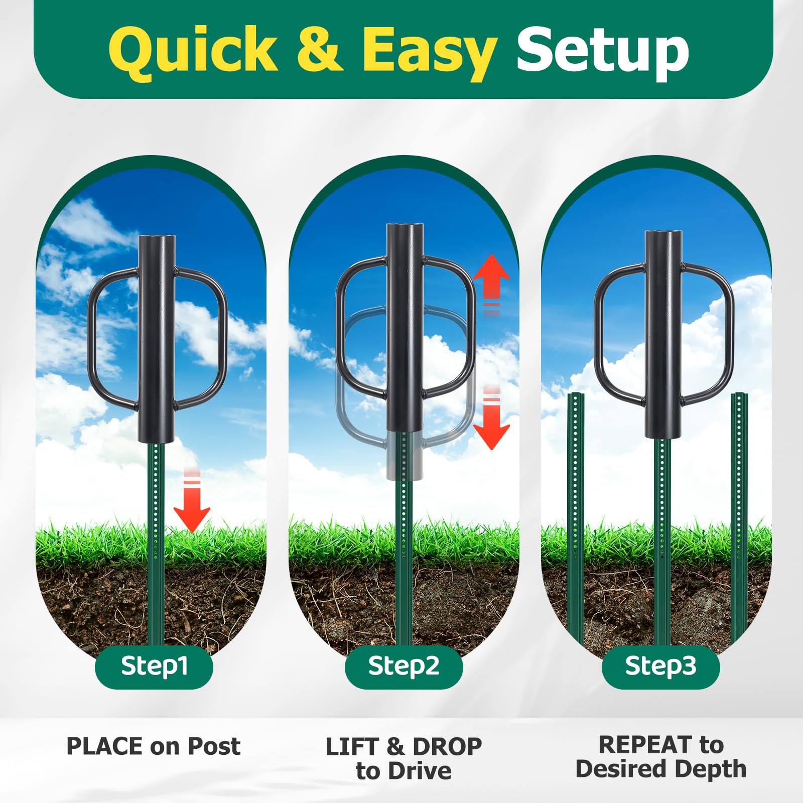 Simple & Safe Operation: No digging needed. Just position, lift & release, and drive straight into the ground. Set posts in minutes.