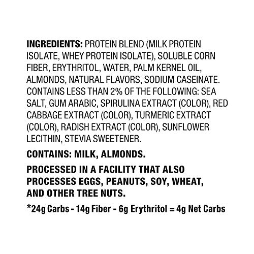21g Protein, 4g Net Carbs, 1g Sugar, 14g Fiber per bar