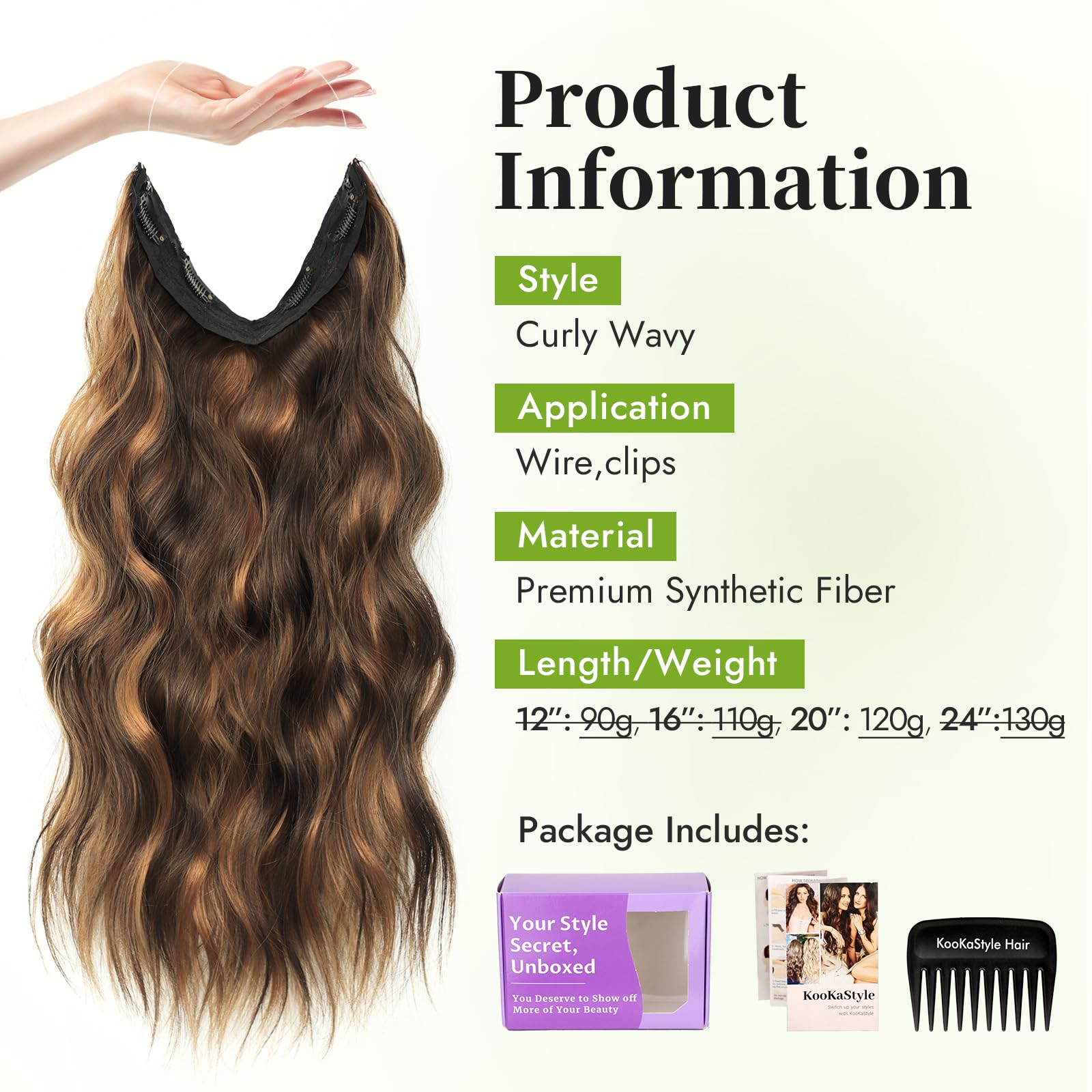 Secure Fit: 1. 4 clips sewn on the weft will keep the hair extensions stay in place. 2. Thicker and invisible wire allows the extension to lie smooth and flat on the head like a secret headband. 3. New S Hook will prevent the wire from falling off.