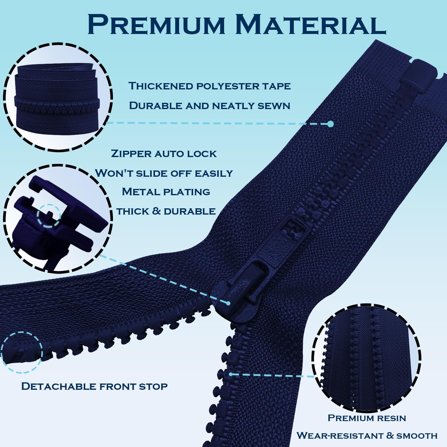 【Size】The Product Contains 3PCS Deep Navy Blue Zippers, With A Length Of 30 Inches And A Left Hand Zipper. 30 inch from bottom to top (teeth length), the full length is 31 inch end to end.
