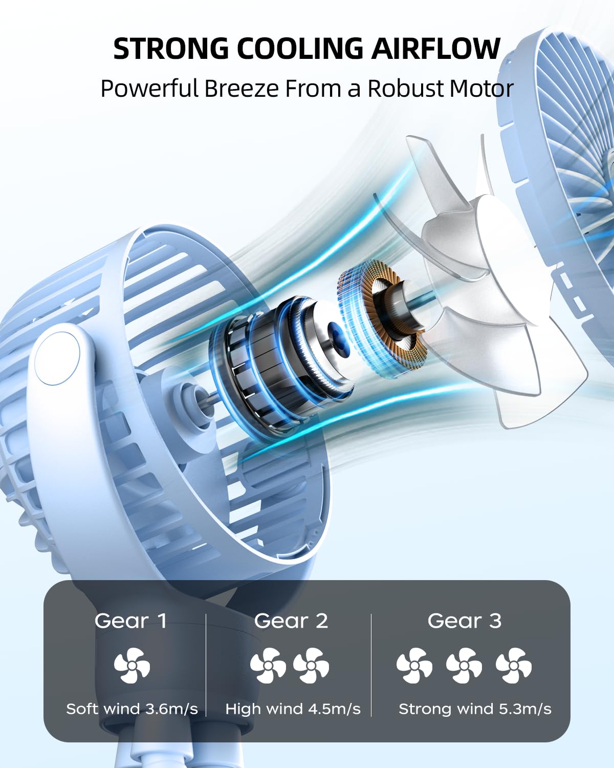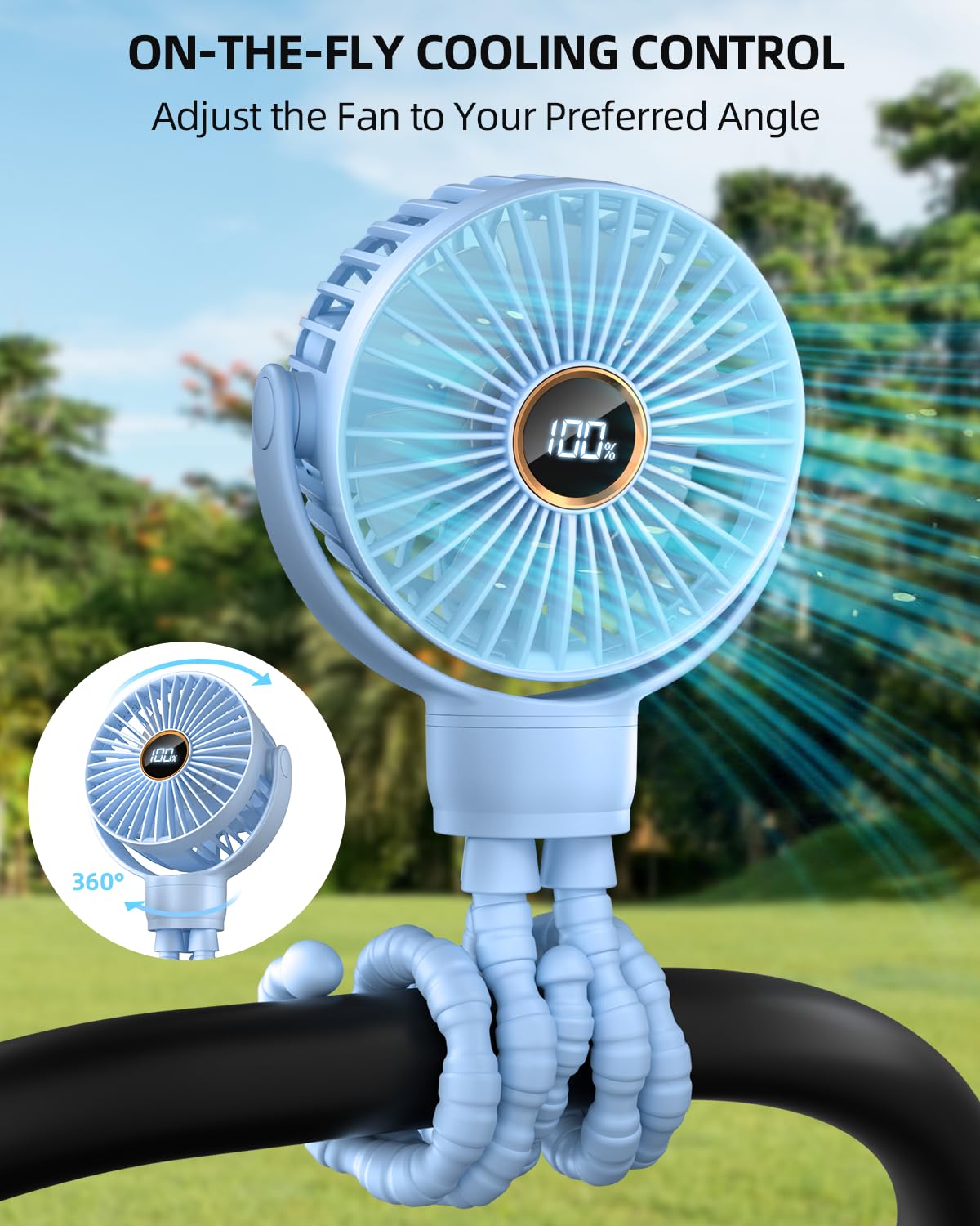 FLEXIBLE-TRIPOD-CLIP: The fan is equipped with a flexible tripod clip, which can be easily attached to the stroller handlebar, car seat, crib, bike seat, treadmill, or any other flat surface. It is convenient to use and provides a stable cooling effect.