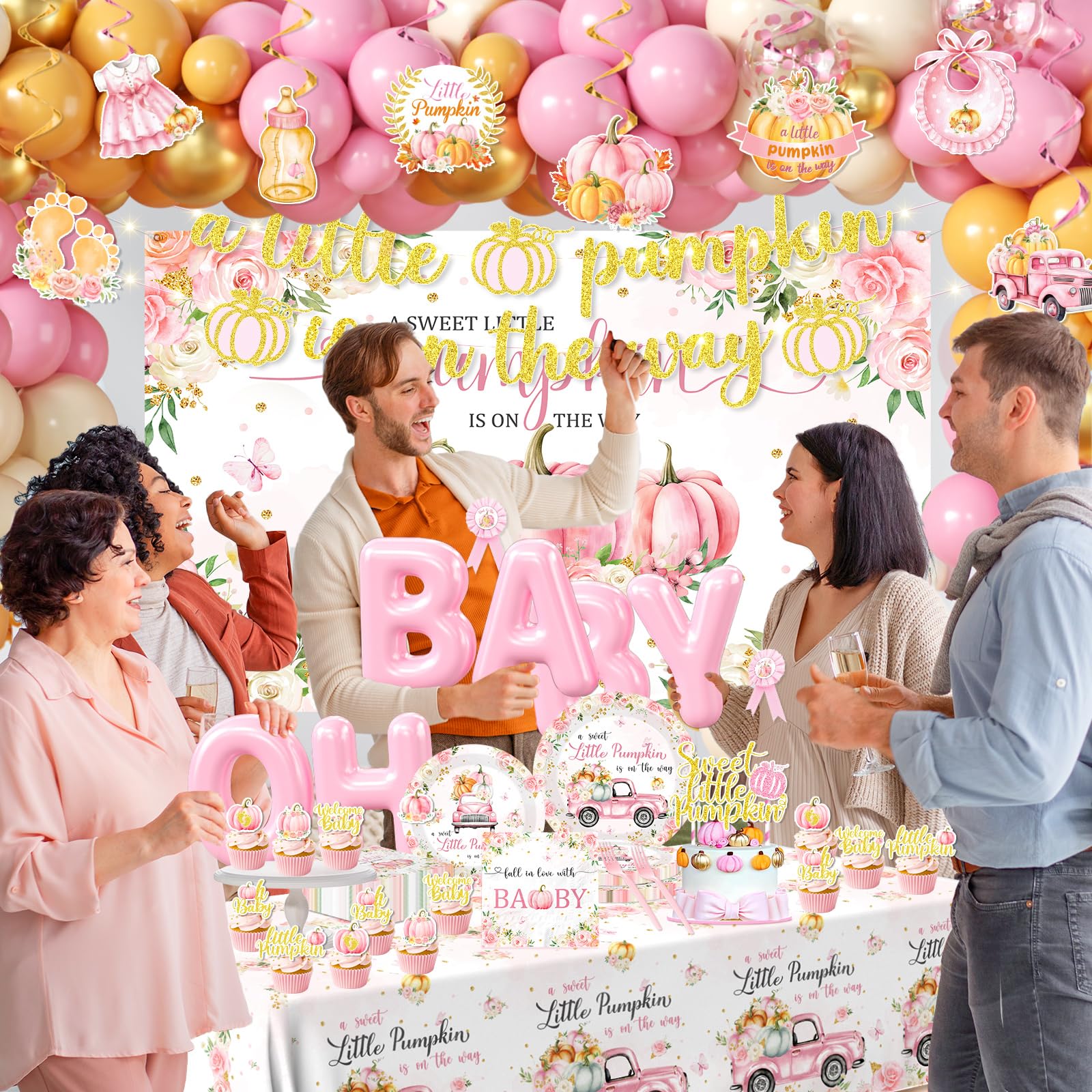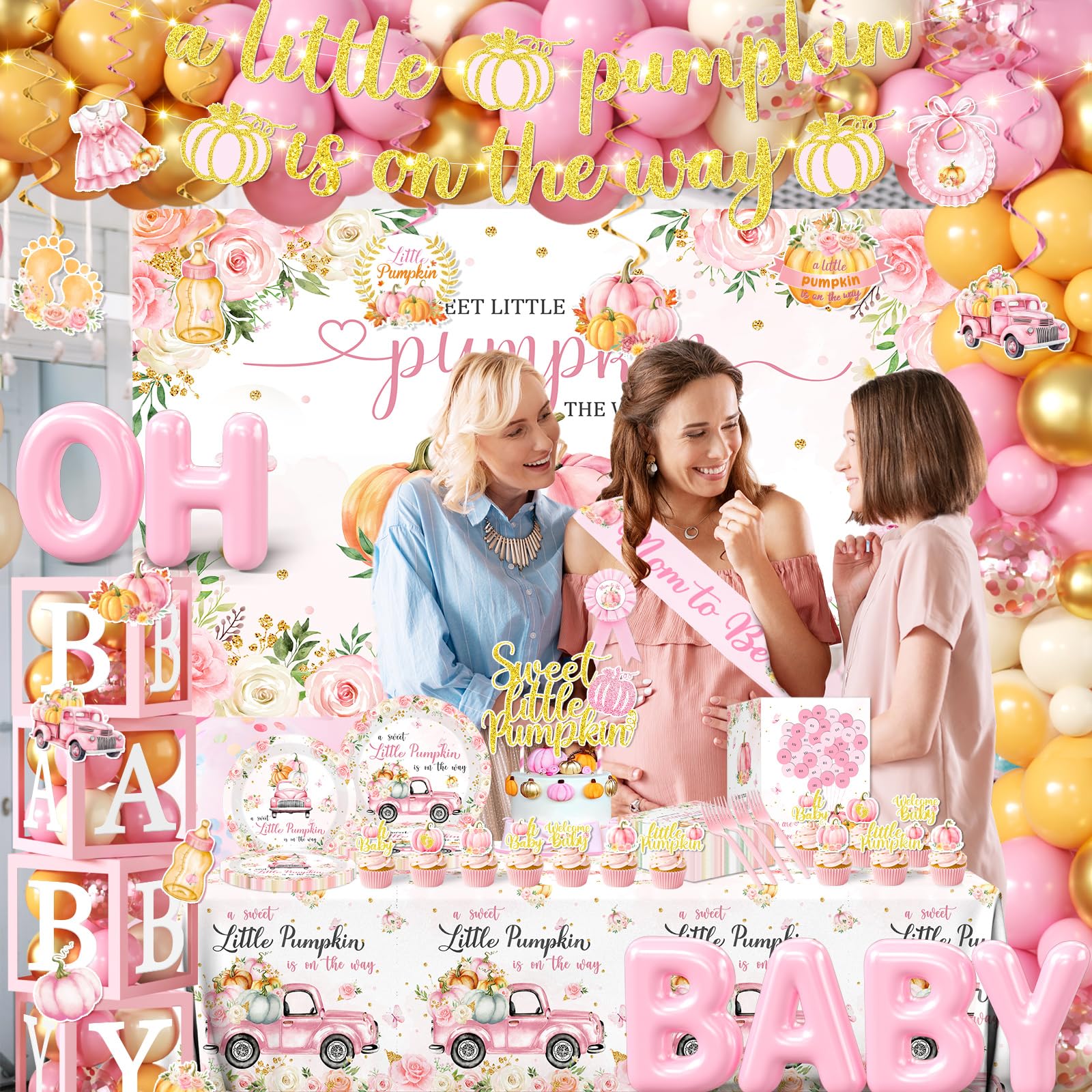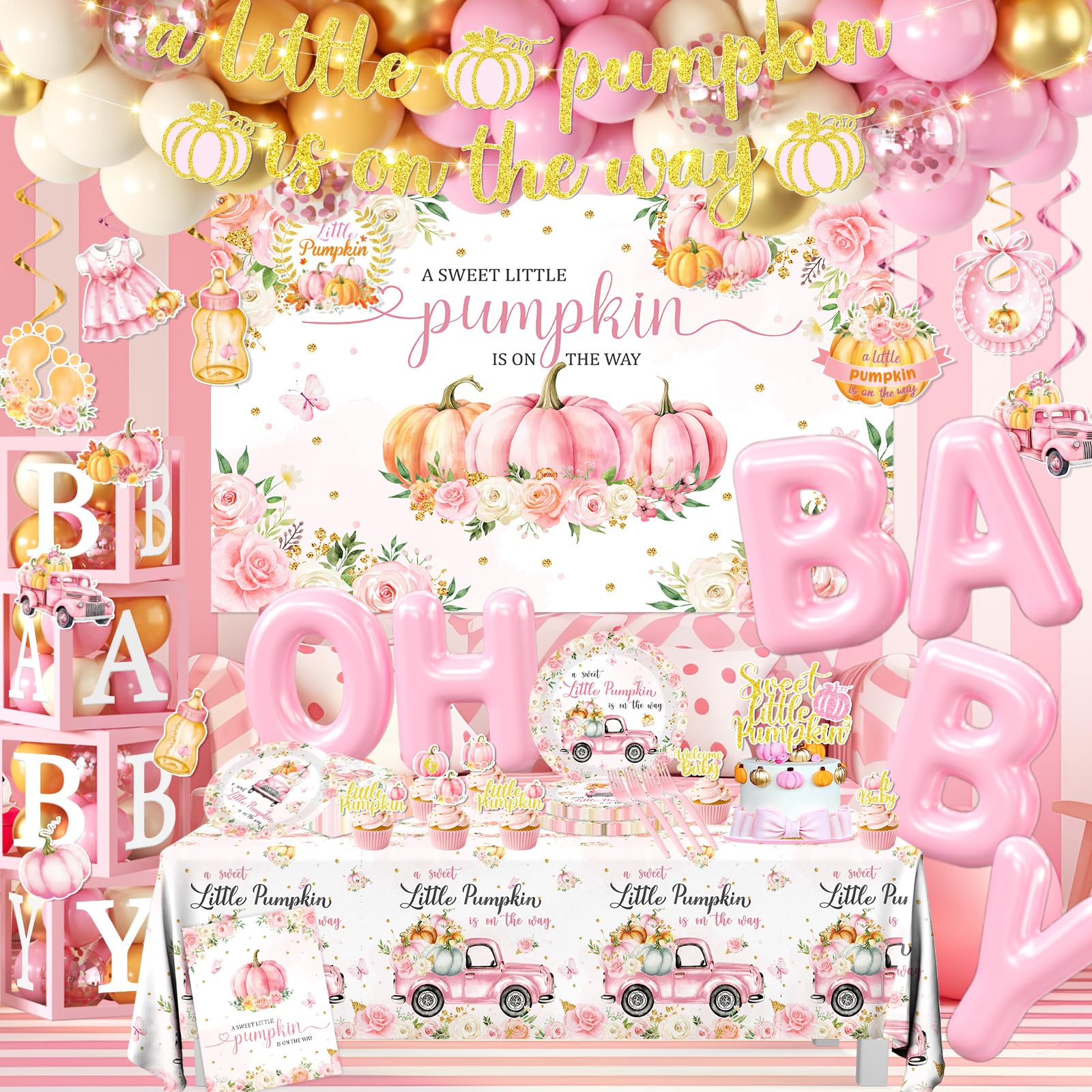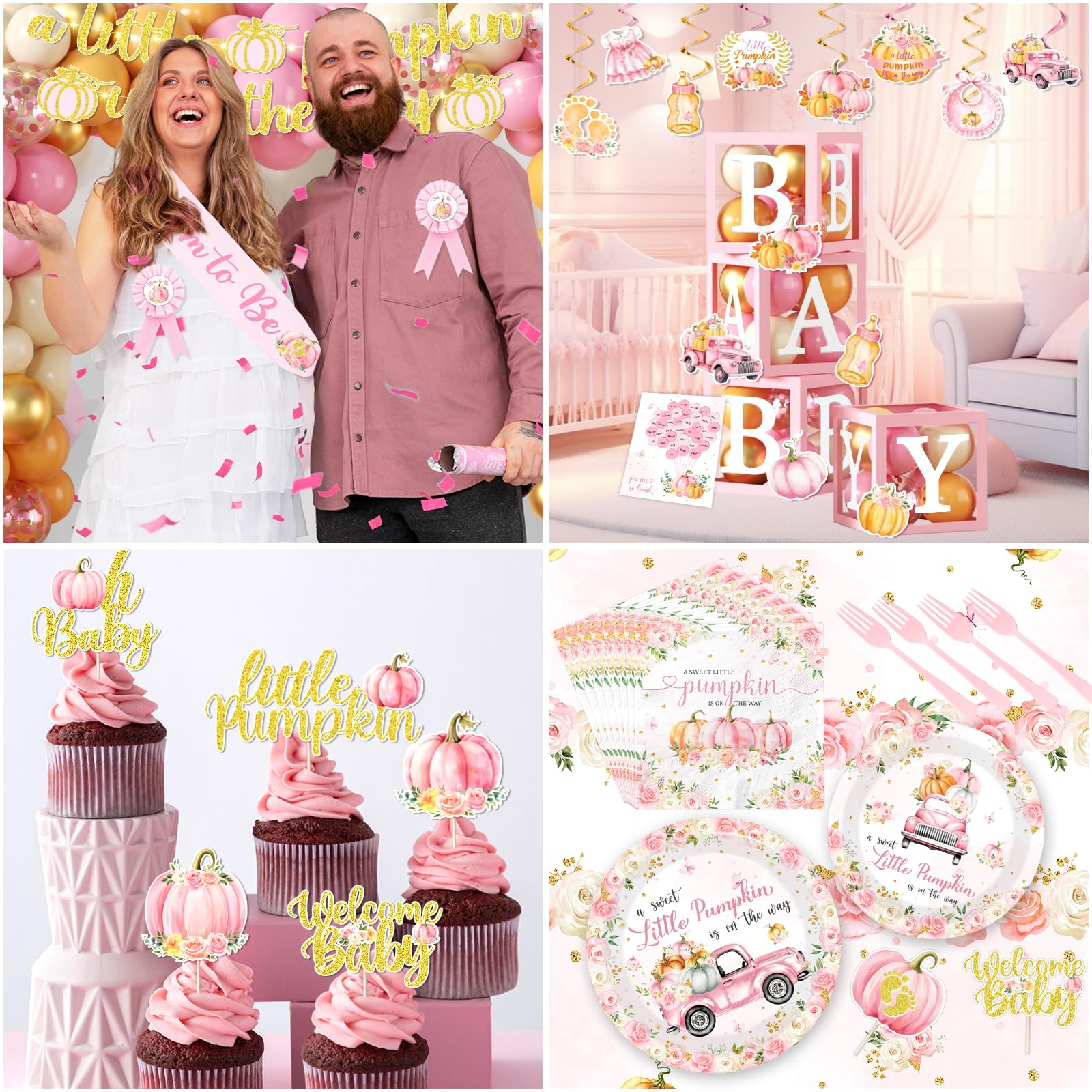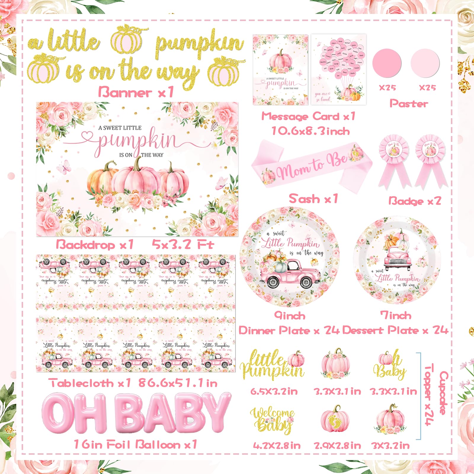【Wide Applications 】Perfect for little pumpkin baby shower decorations,a little pumpkin is on the way baby shower,little pumpkin baby shower,fall baby shower party decorations, thanksgiving baby shower decorations, pumpkin themed party decorations,little girl baby shower decorations, friendsgiving party supplies,autumn themed decorations,baby girl baby shower decorations,welcome baby party,etc. Customized for girl pink Little Pumpkin baby shower,the package includes all you need to throw a baby shower party, saving you the time and hassle of buying everything separately.