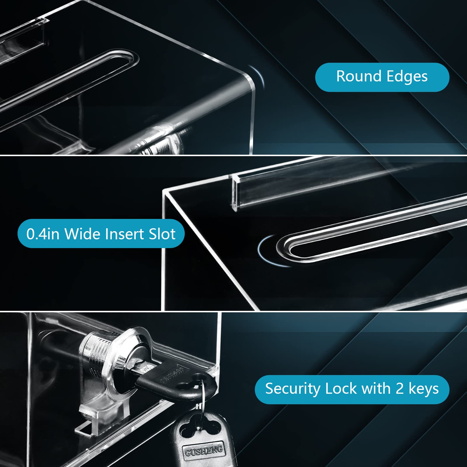 【Durable Packaging】 Our clear donation box is carefully packaged to ensure that the product is well-protected and not easily damaged during shipping or handling. This ensures that you receive a high-quality and intact product.