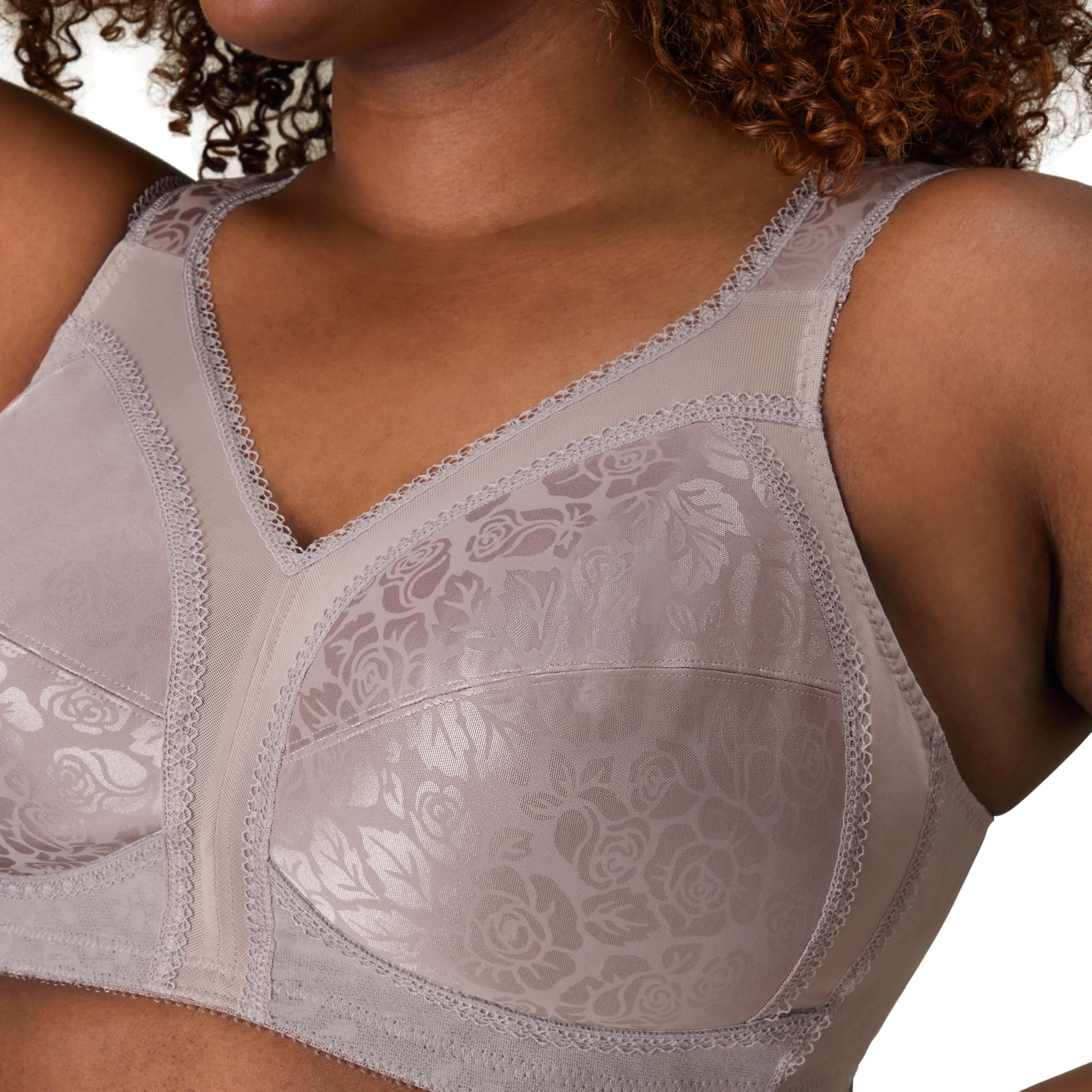 Description One of our customers said it best: "Finally found a bra that fits...great support, very attractive and very comfortable" This wireless bra from Playtex® is part of the famous 18 Hour® collection, a go-to favorite for so many customers who value wirefree comfort but need superb support. This wireless bra is fashioned around the famous Playtex M-frame that comfortably conforms to your shape. With a pretty, satiny floral print, this wireless bra is designed with the Playtex® 4-way TruSUPPORT® system that provides higher sides for bulge control, fuller, softly seamed cups for natural shaping, wider straps for all-day ease, and a smoother back for enhanced stability. The stay-in-place straps play an important role in the comfort of this full-coverage bra, with a wider, cushioned design that helps relieve shoulder pressure for no-dig comfort. And you'll love the Tagless® styling for itch-free comfort. Step up to the superior fit and dreamy comfort of this 18 Hour bra from Playtex.