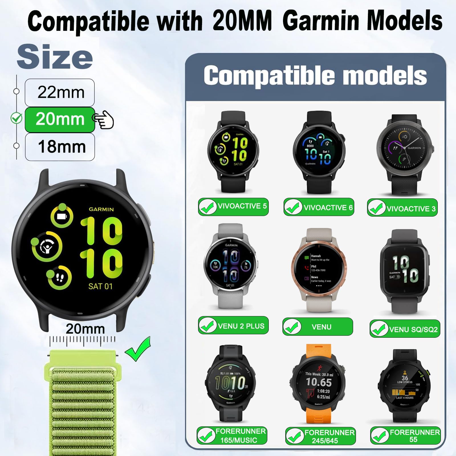 【Compatible Models】zocovin 20mm nylon wristbands compatible with Garmin Vivoactive 6/Vivoactive 5/Vivoactive 3 Music, Venu sq 2/Sq/Venu/Venu 2 Plus,Forerunner 55/165/645/245,Vivomove HR/Trend/Luxe /Style. Smartwatch. Smartwatch.