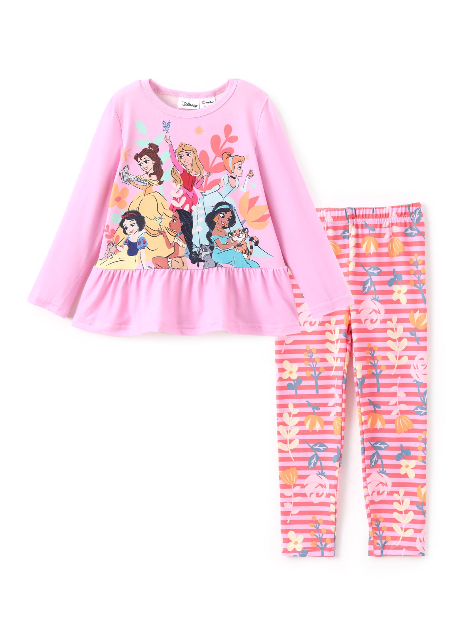 Officially Licensed Style with Disney Princess Girls Long Sleeve Ruffle T-Shirt Dress Pants Leggings Outfit Set