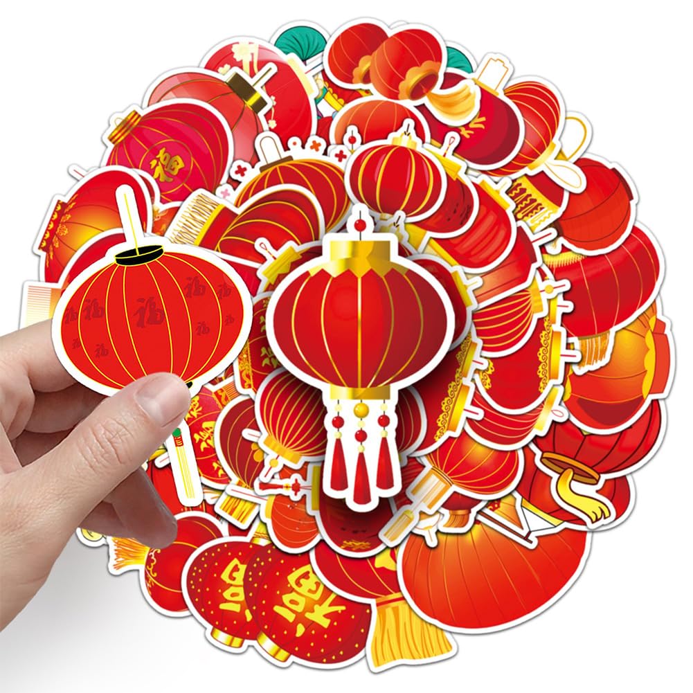 These Chinese Lantern theme Stickers are very vivid and beautiful; You just need to use your imagination and creative works with these funny Stickers!. Materials: Vinyl PVC. Sticker Quantity: 50 Pcs. Stickers Size: About 1.97-3.15 inch / 5-8 cm each. Package Size: 3.94 x 3.15 x 0.47 inch / 10 x 8 x 1.2 cm. Package Weight: 1.06 oz / 30 g.