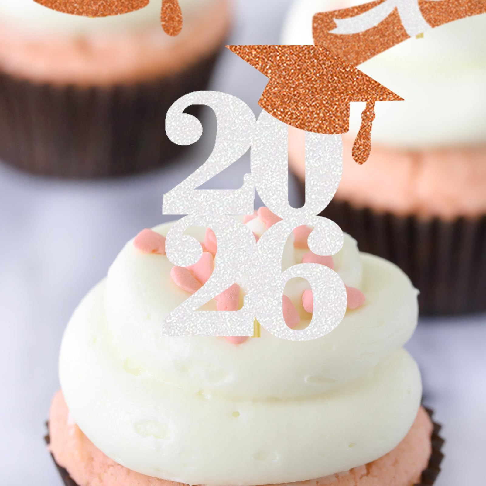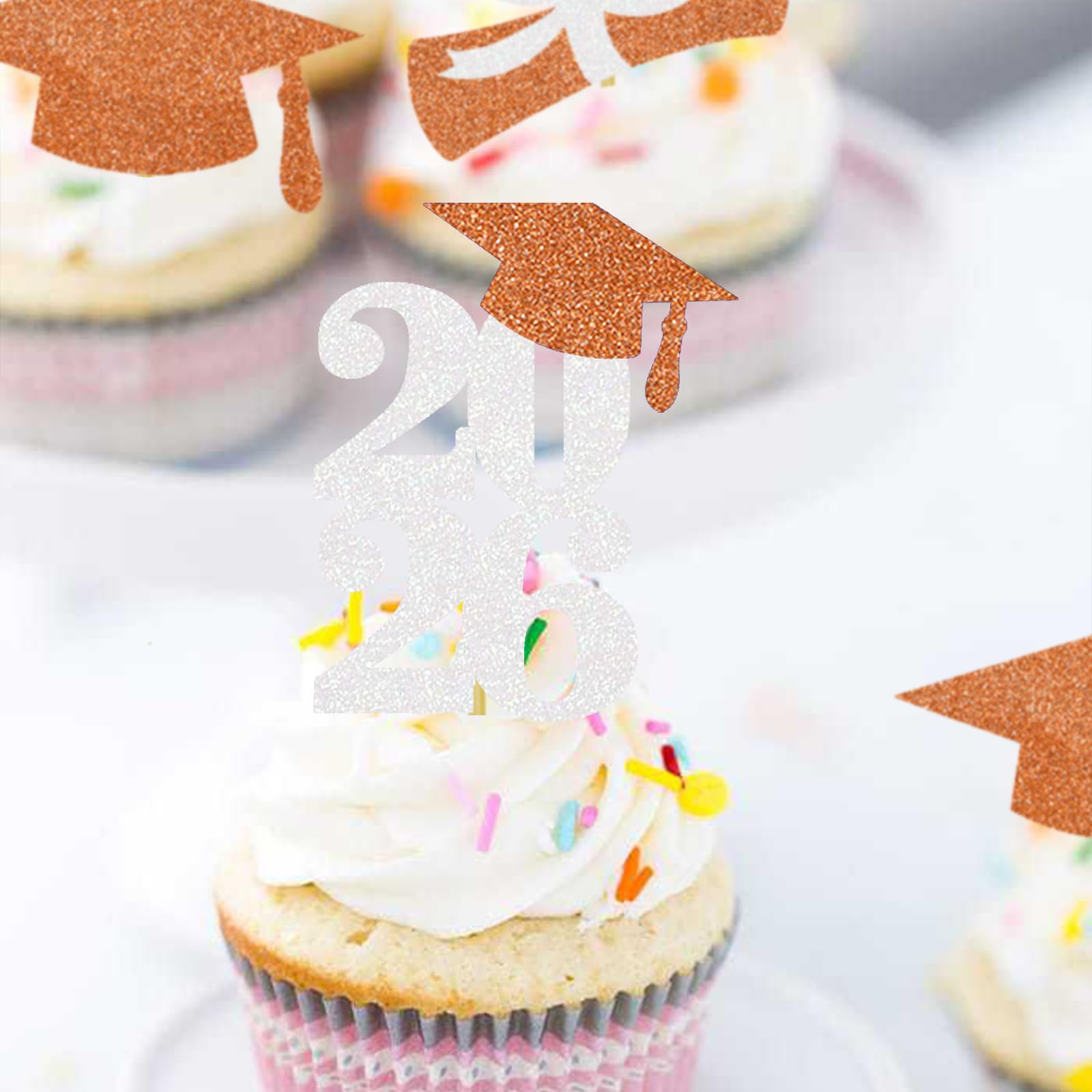 The class of 2026 cupcake toppers are made of glitter paper, fully assembled and ready to use, you don’t worry about falling glitters everywhere! Decorate your cupcakes with these glitter toppers