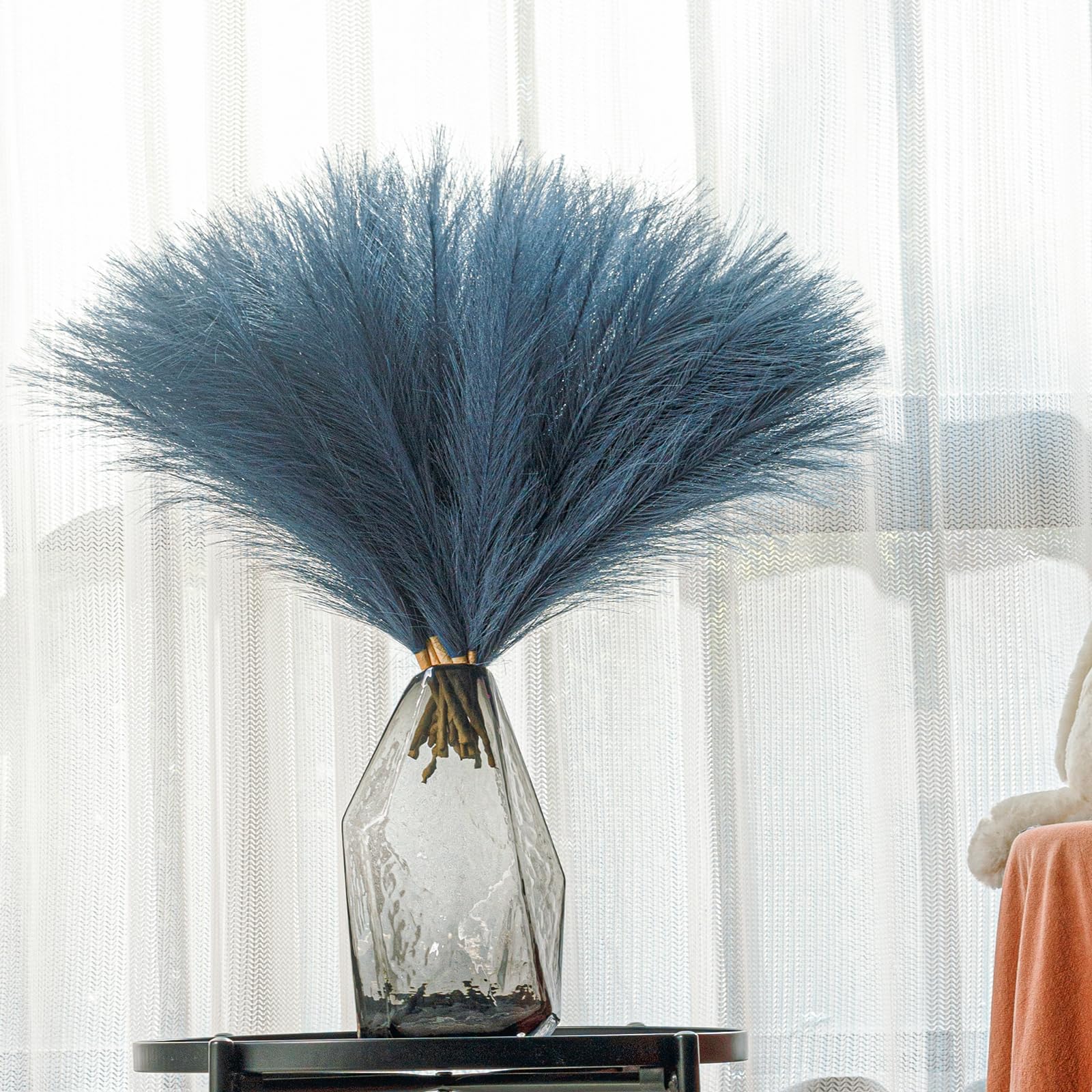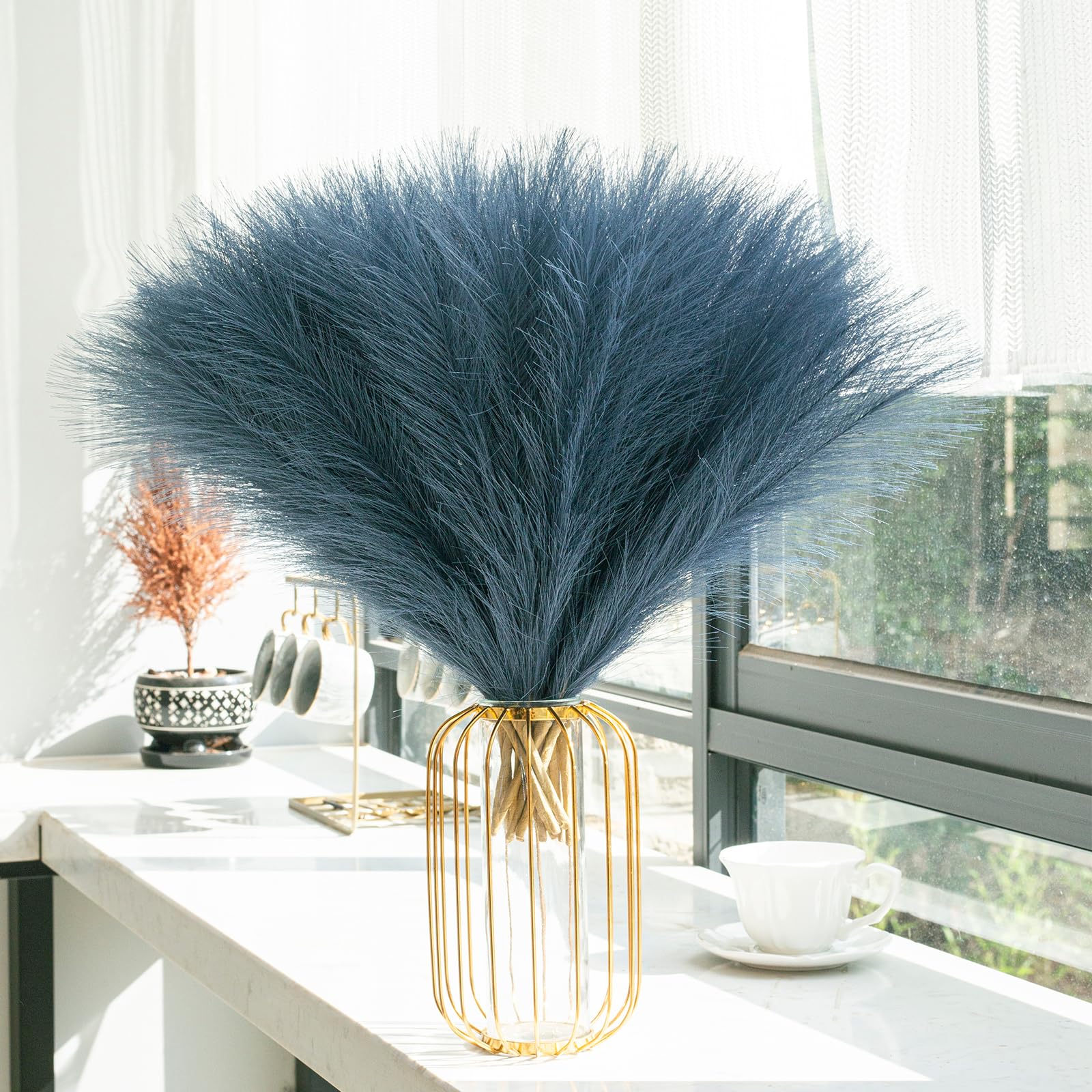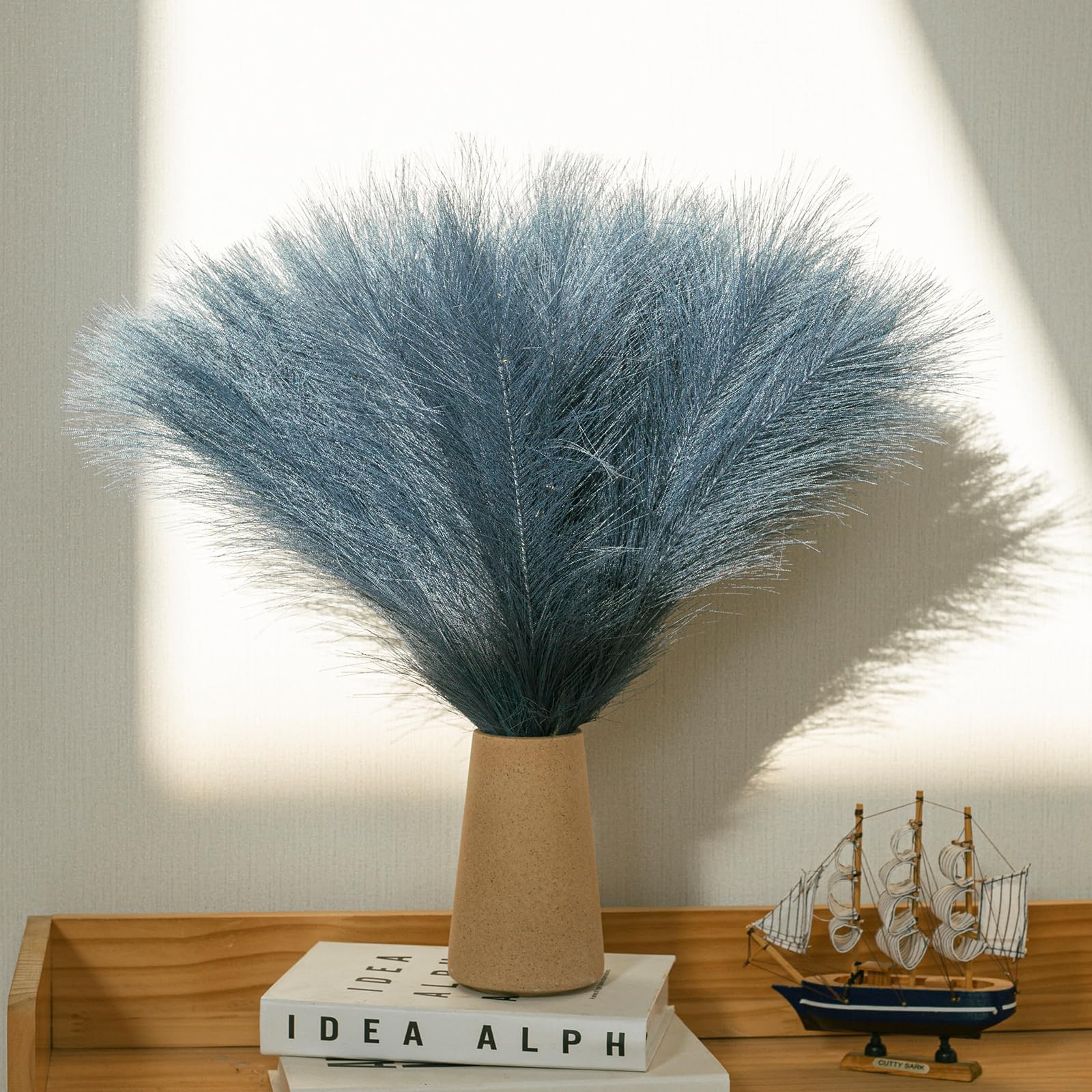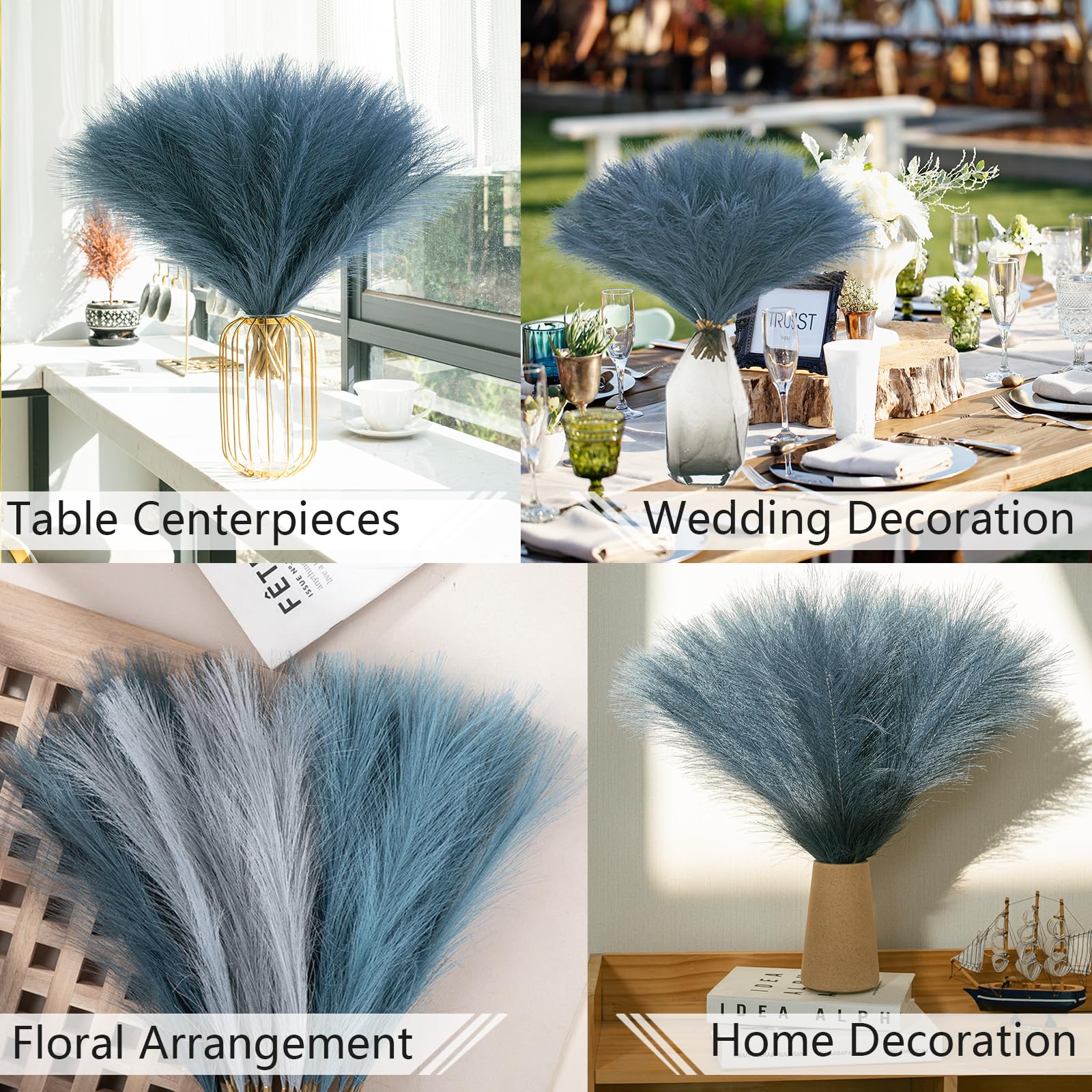 【Fluffy & Non-fading】Different from natural dried pampas grass, artificial pampas grass will not shed or fade away through out time, doesn't deform, is fluffy and dense, is easy to manage, you can fluff them up for a fuller look, provide a chic bohemian modern display