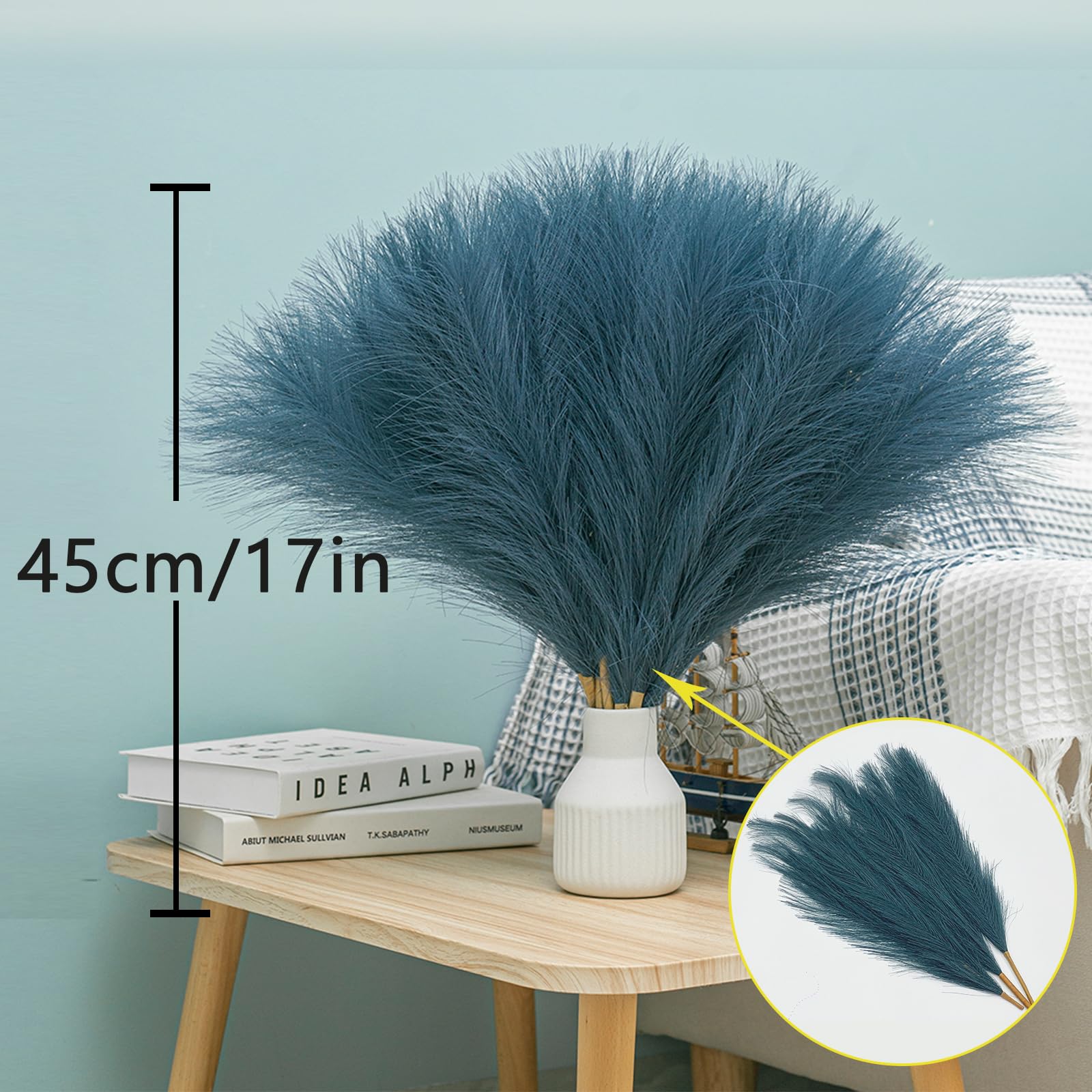 【Perfect Vase Decor】Each set contains 10 faux pampas grass, each pampas grass is about 17 inches/45 cm long, each pampas grass stem also has 5 branches, the variety of branches makes the product look fuller and fluffier, making it easier to fill your vase