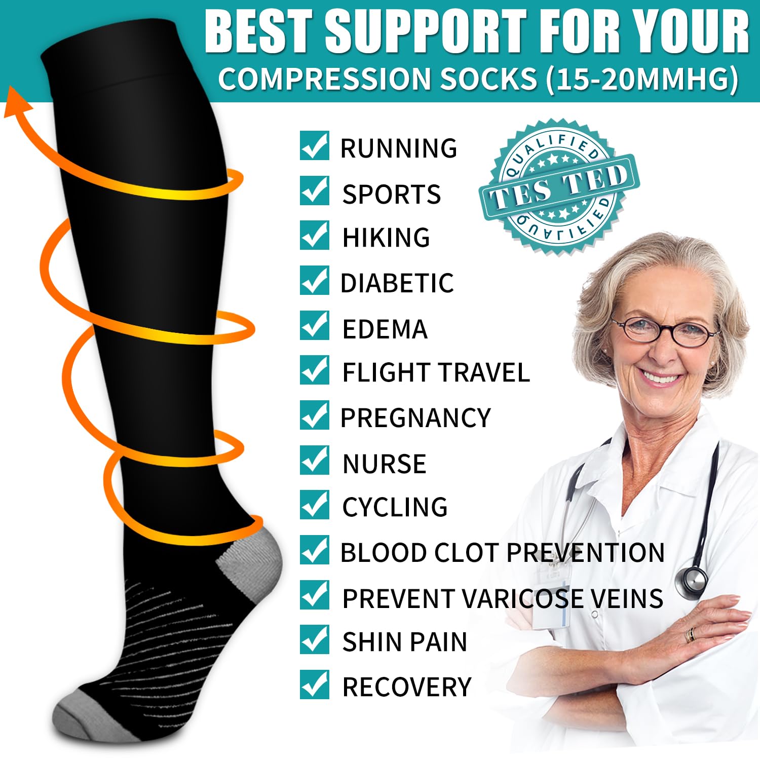 VALUE PACK - Each pack includes 6 pairs of compression socks. Our design of comfort and style comes at a very affordable price in comparison. There are available in different fabrics and colors. They are discreet and look like the ordinary socks you have already wear to work. Our socks are universally suitable for all work.Whether you are an athlete,teacher,flight crew,receptionist, office worker, pregnant, elderly ,they'll work for you as you work for yourself and your family.
