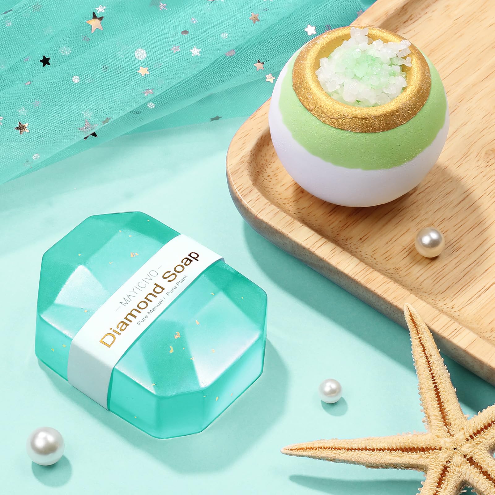 OCEAN-SCENTED RELAXING SPA GIFTS: The 4oz ocean scented candle in our get well gift baskets care package for women is made of natural wax, can burn smokelessly & evenly for up to 30 hours. Comes with a diamond handmade soap, an exquisite bath bomb, all release gorgeous & long-lasting ocean fragrance, will bring her a luxurious & sublime bubble bath experience, help soothe her mind and relax body. A thoughtful ocean-scented relaxing spa gifts for female Womens Birthday Gifts for Mom Sister