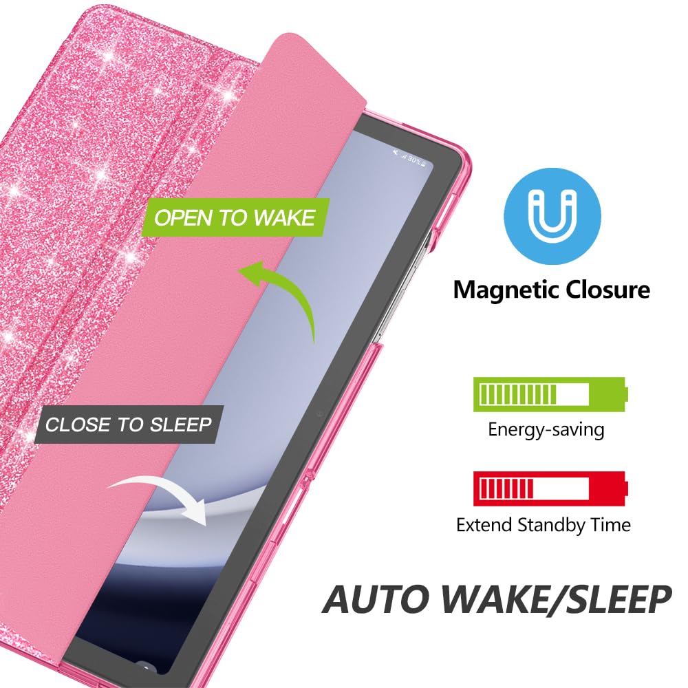 Auto Wake/Sleep: Built-in magnetic strip, automatically wakes or puts your tablet to sleep when the lid is opened and closed. this Tab A9 Plus Case Protects and extends battery life