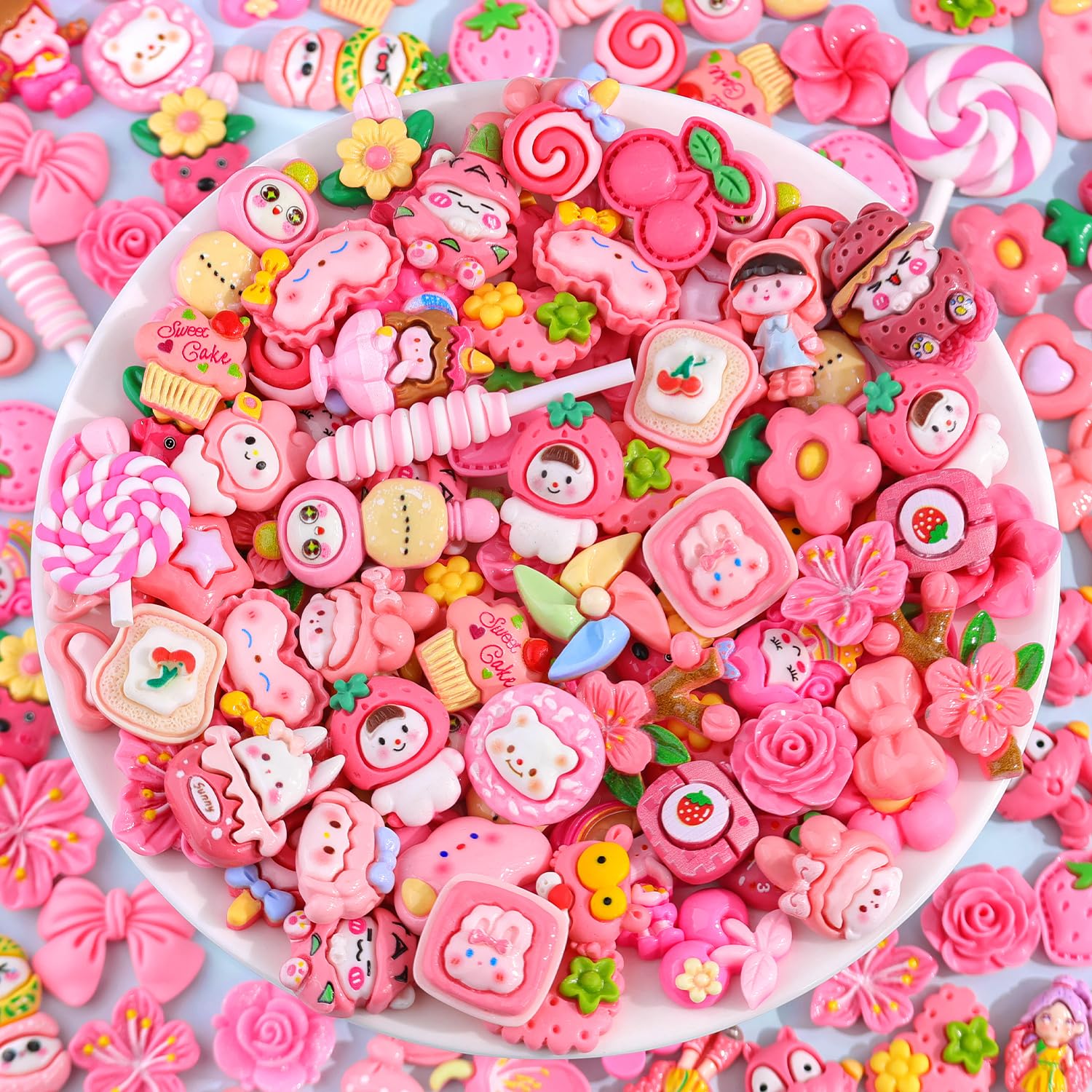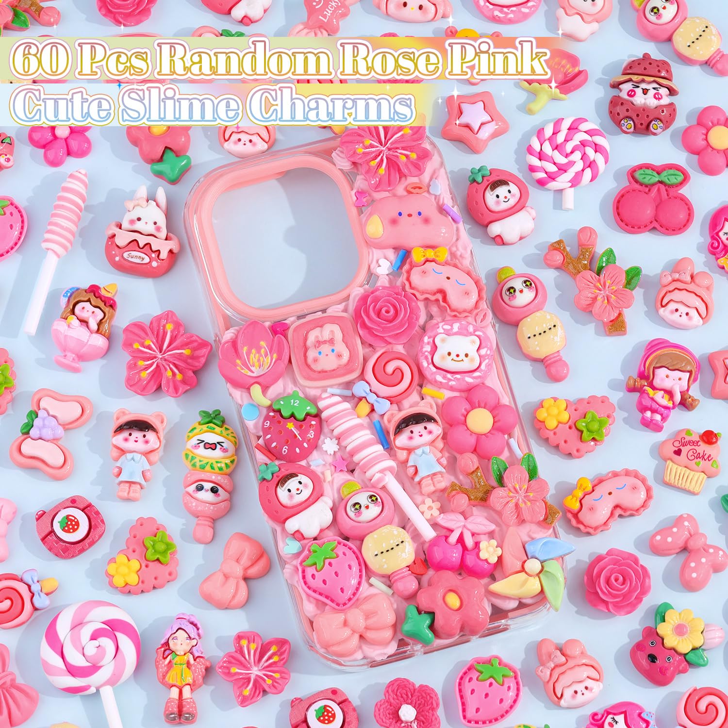 SUFFICIENT QUANTITY -- Each pack contains 60 pcs rose pink slime charms that feature a delightful variety of designs, perfect for adding a whimsical touch to your funny activities like slime,junk case,etc. These charms bulk can meet your crafting needs
