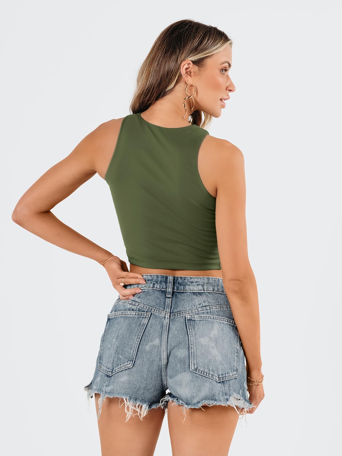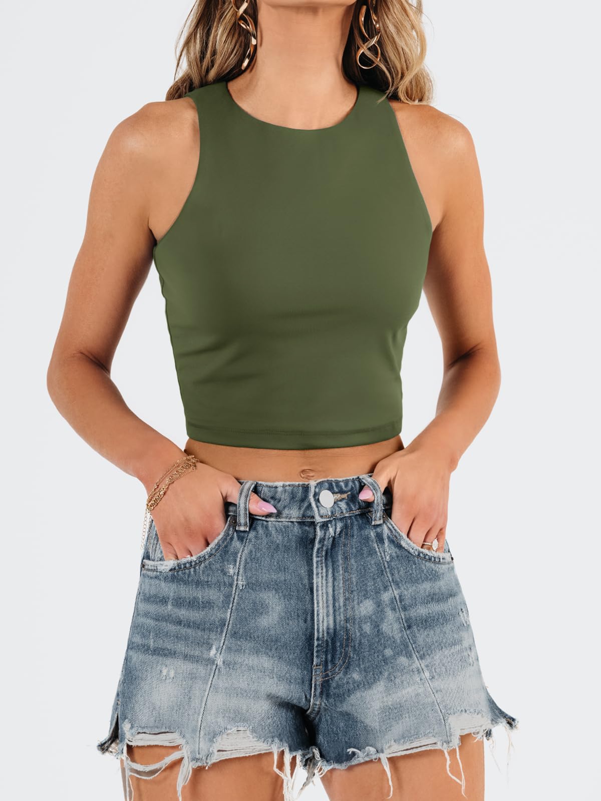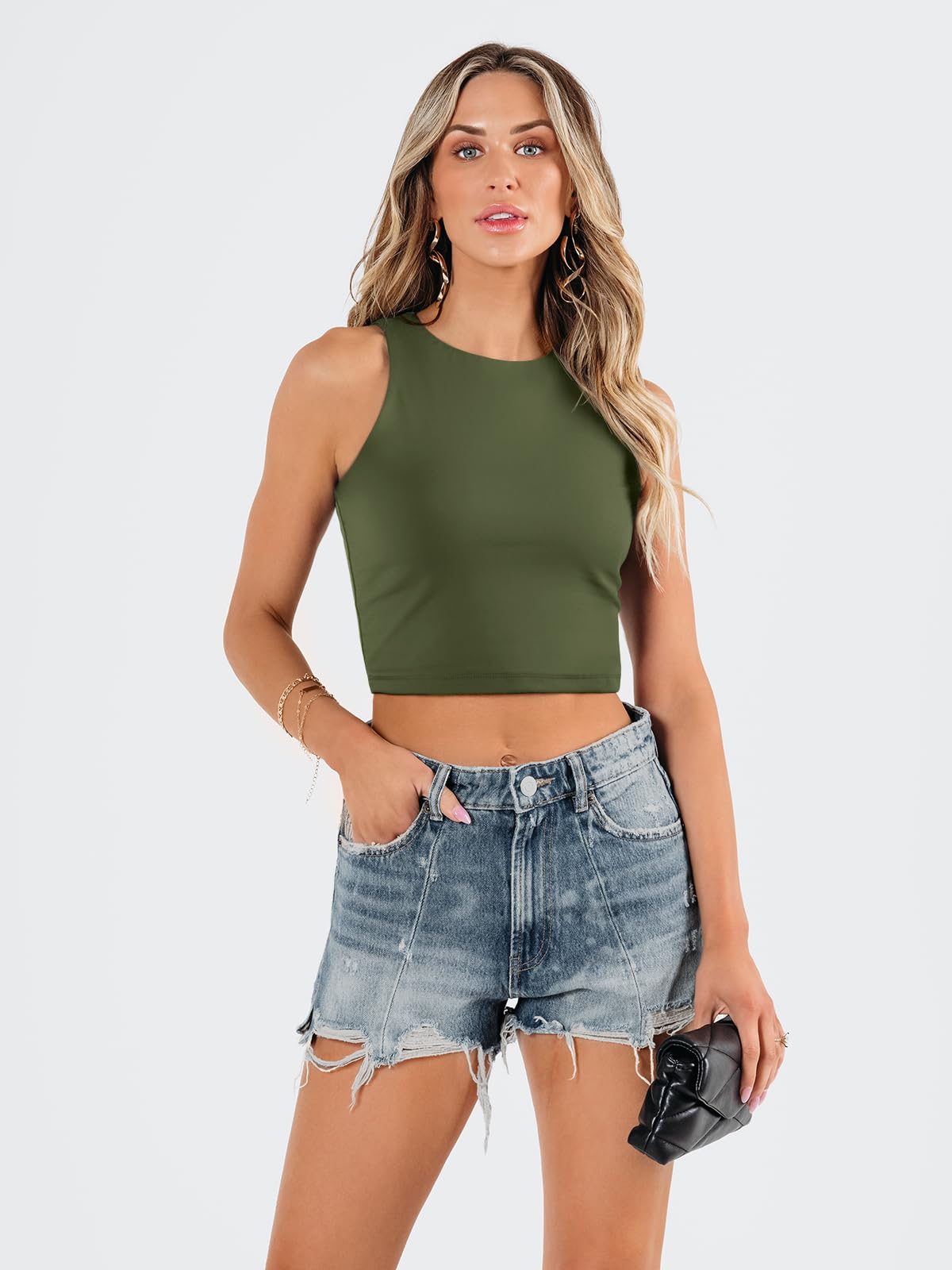 Fashion Design: Double layer of this crop top can wear without bra,and the material also good for work out sports,high neck design and crop top style,basic,fitted,casual style,crew neck ,sleeveless, slim fit