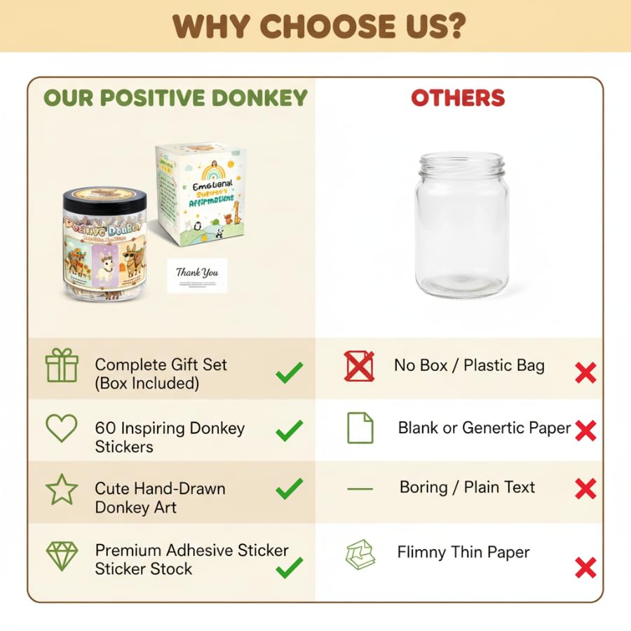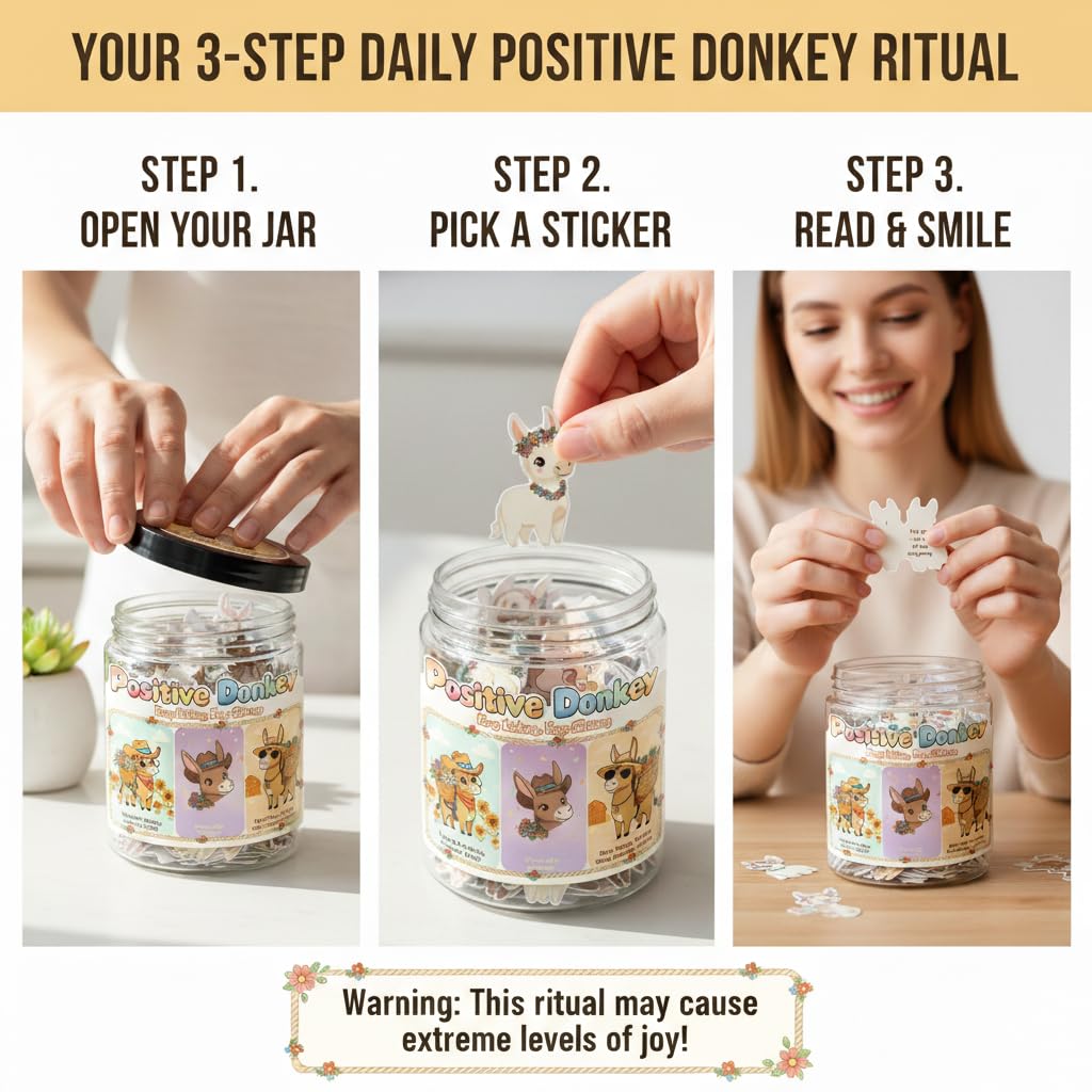 🫏 Bring Joy To Your Day This Positive Donkey Jar includes 60 uplifting affirmation cards that offer emotional support, stress relief, and laughter when life feels a little stubborn.