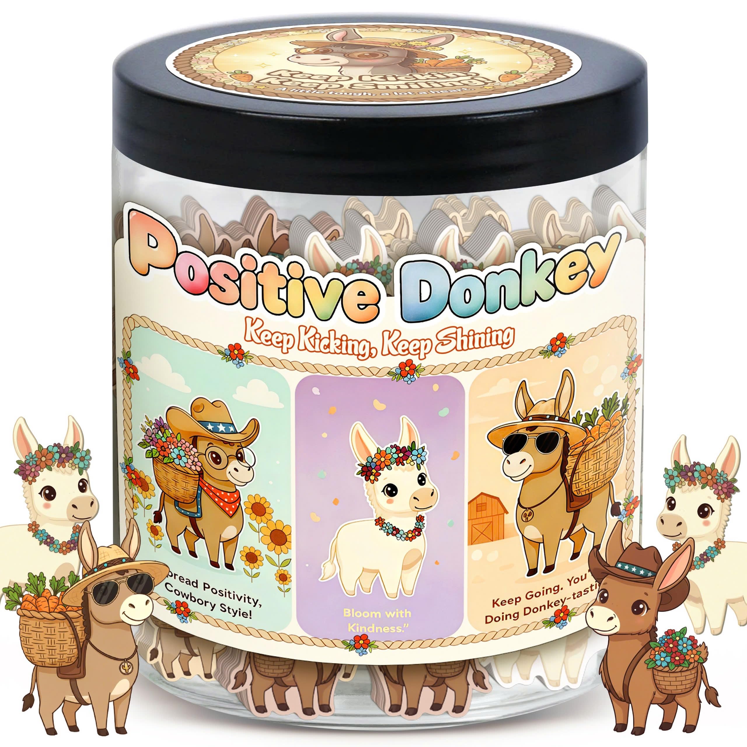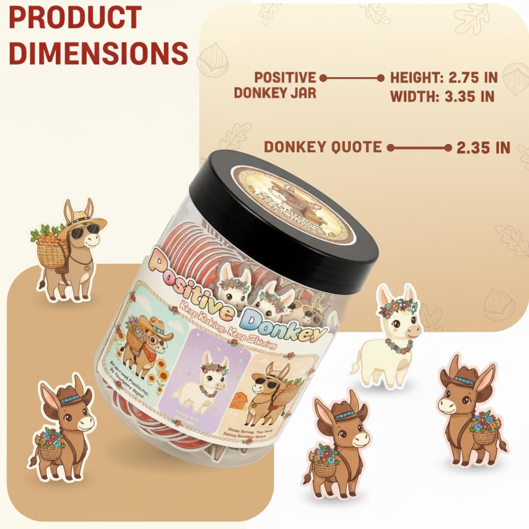 🎁 Adorable Donkey Design Featuring cute donkey illustrations and witty quotes, this affirmation jar makes a fun conversation piece and a charming addition to your home or office decor.
