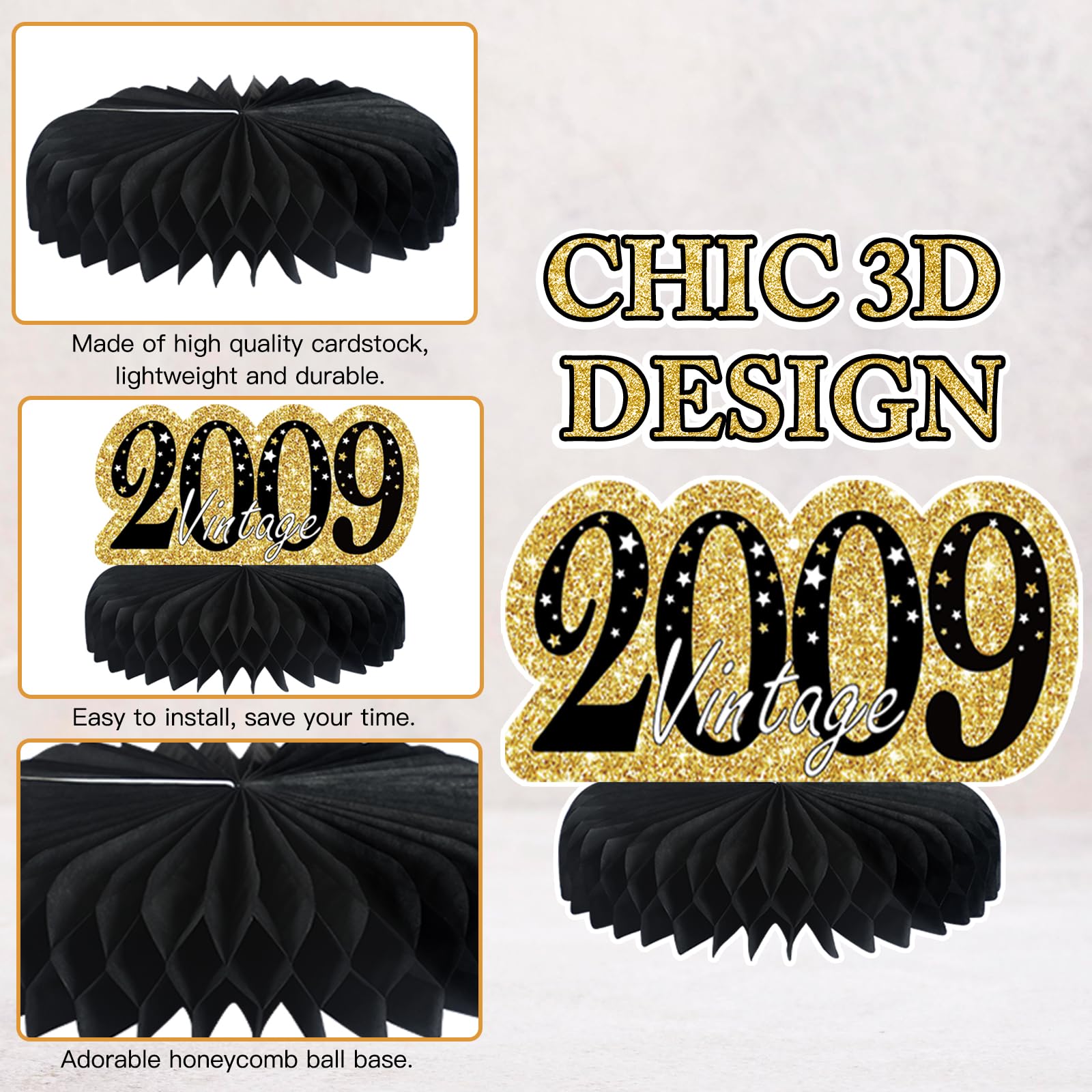 [16th Birthday Theme] - The 16th birthday table centerpiece decorations adopts double-sided printing and retro black gold design, and the surface is printed with many related elements, such as Surprise 2009,Cheers to 16 Years,Hello Sixteen and other text and balloons, stars and other patterns.