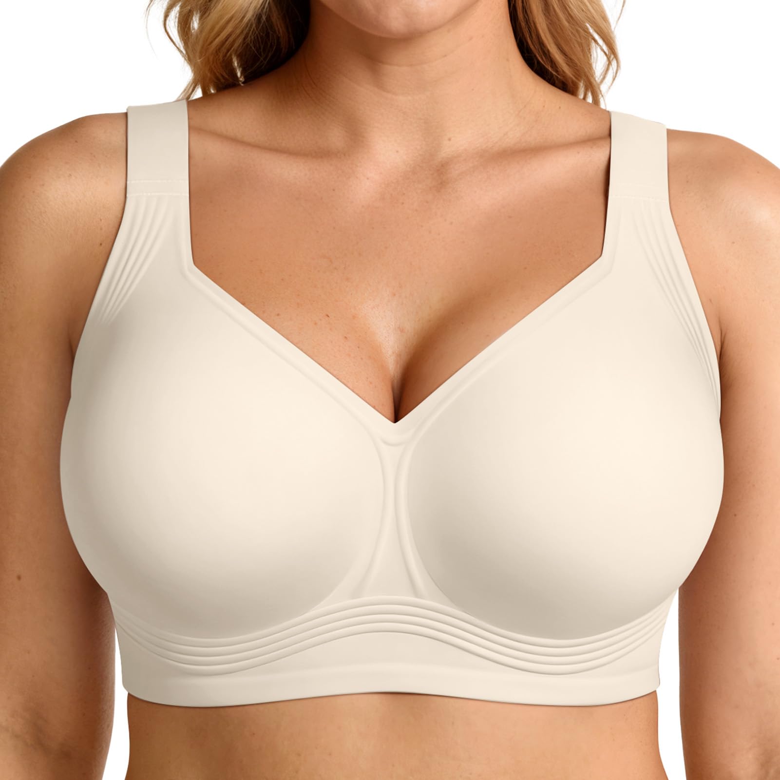 【Specially Designed for Fuller Figures】Full coverage bra design, higher side wings and side support strips, wider shoulder straps offering a maximum support and reducing breast movement during workouts or daily activities. The full coverage bras for women come in a variety of sizes, from S to 5XL, fit for CUP B to CUP DDD. Ideal for fuller figures, the wireless bras for women provide the perfect balance of comfort and style.