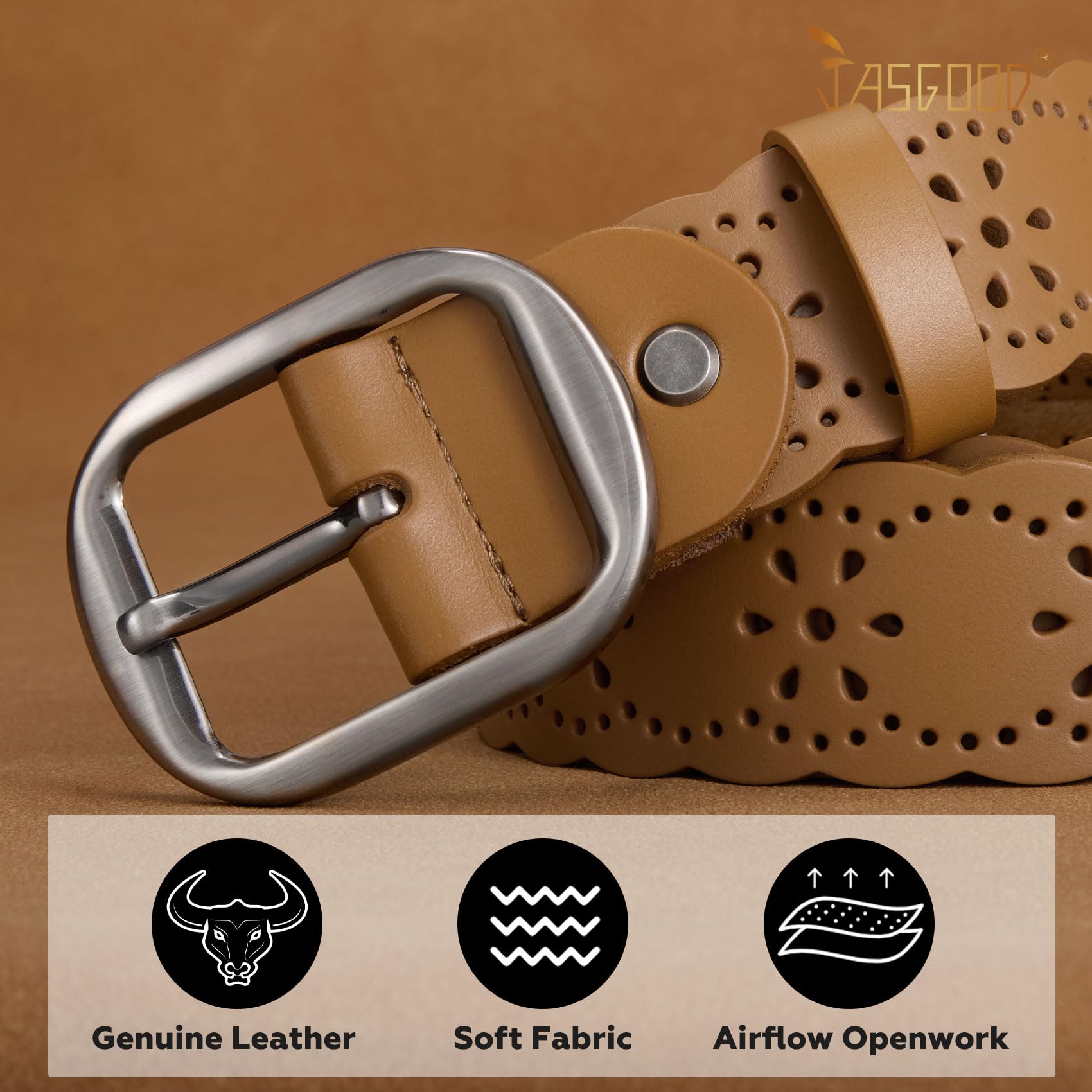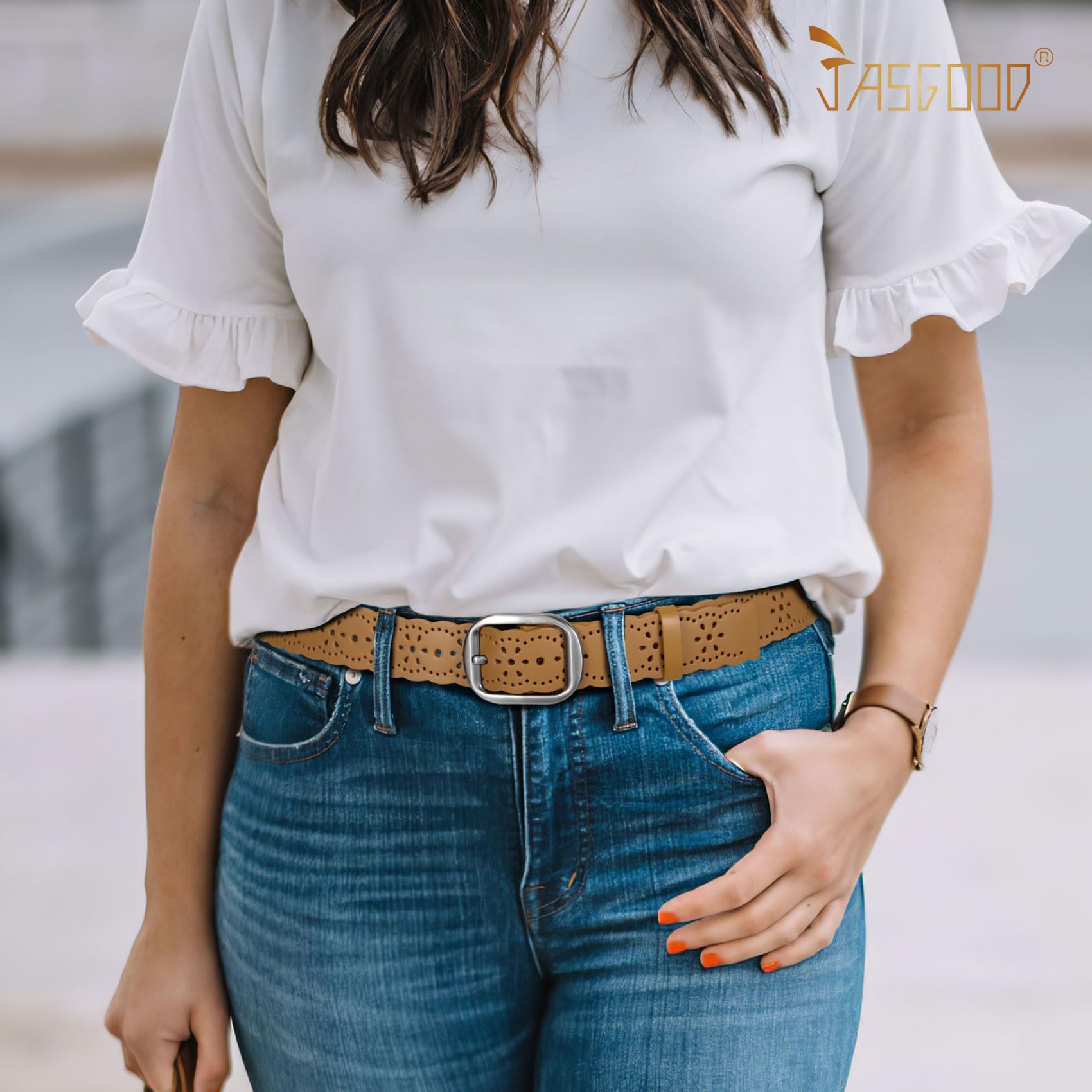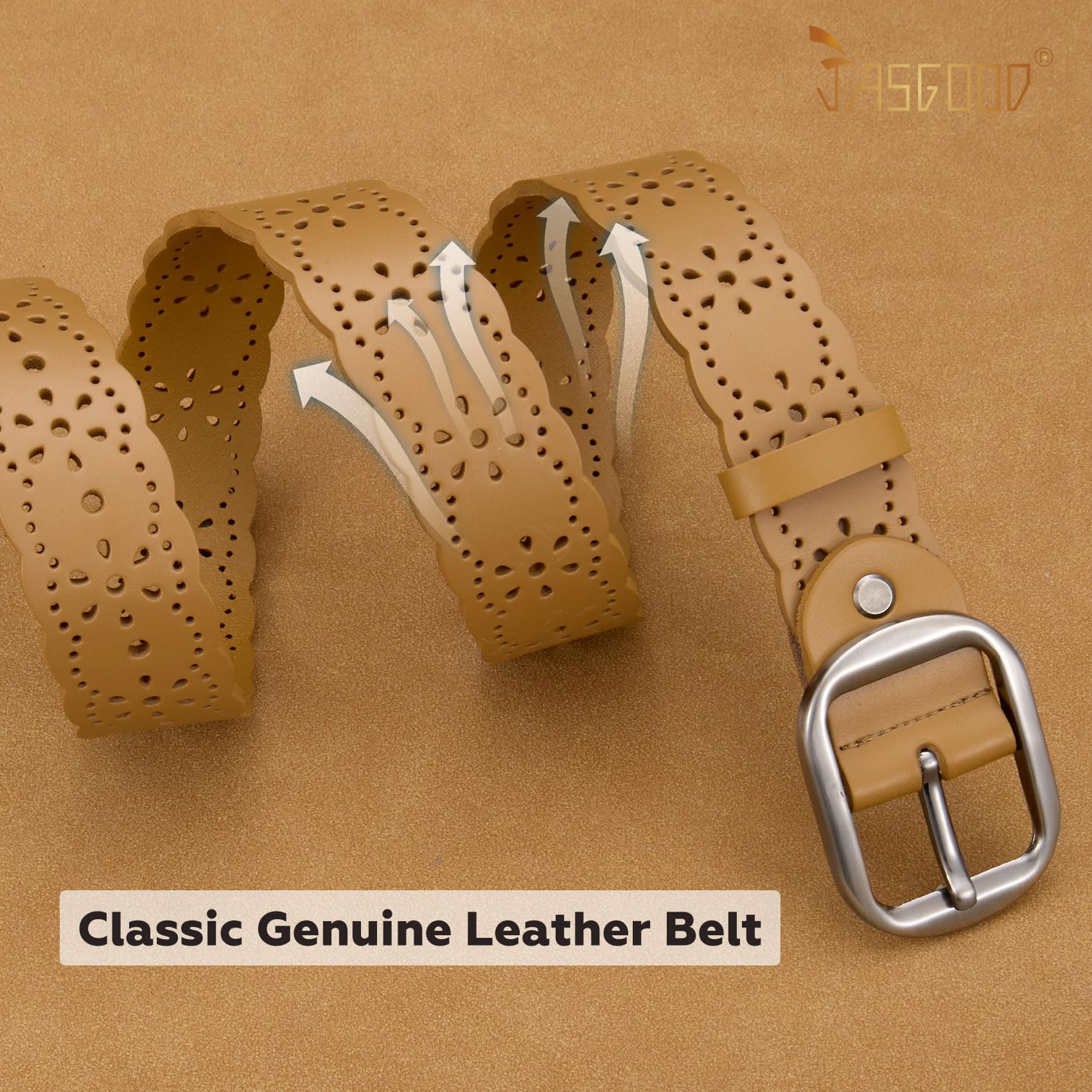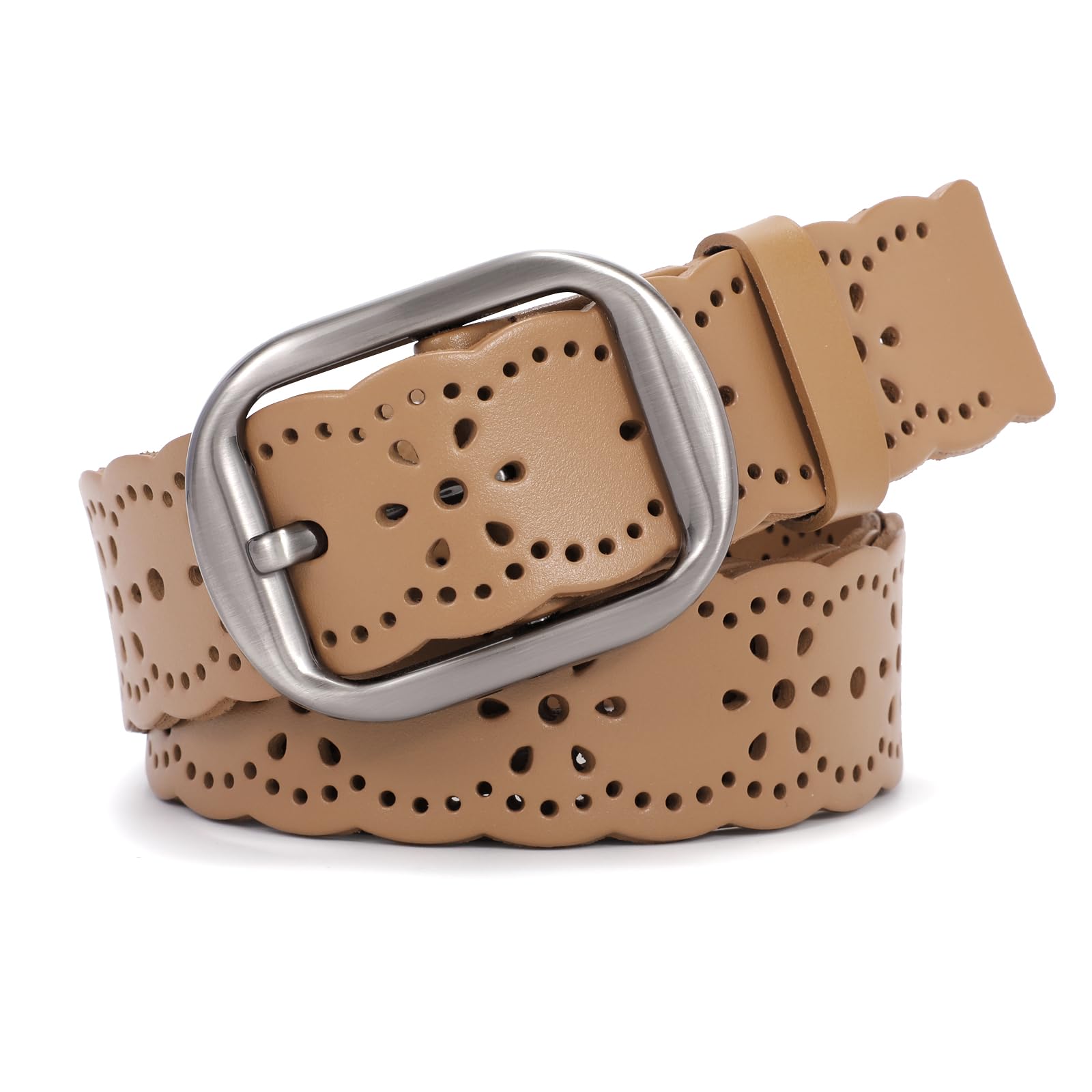 Women Wide Belt made of high quality leather that touch so soft and durable. The metal buckle is polish surface without blemishes that always keep shiny. The flower cuts are very precise and have no residual flakes of leather.