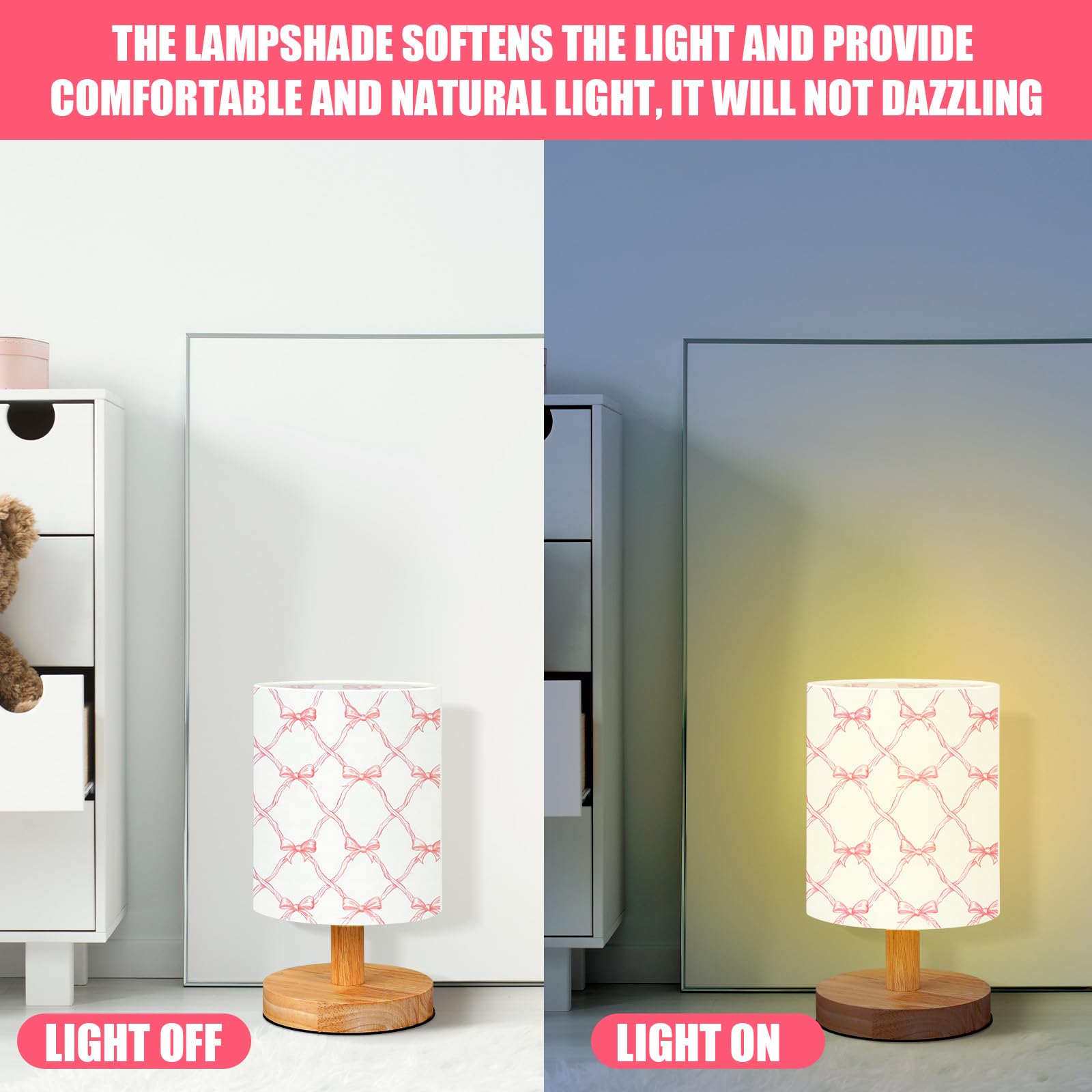 Practical Gift Choice: coquette bow lamp makes for a thoughtful and useful gift; Be it birthdays, Christmas, Thanksgiving, housewarming, or just a delightful surprise for your little ones, partners, families, this nightstand lamp makes for a nice addition to their space