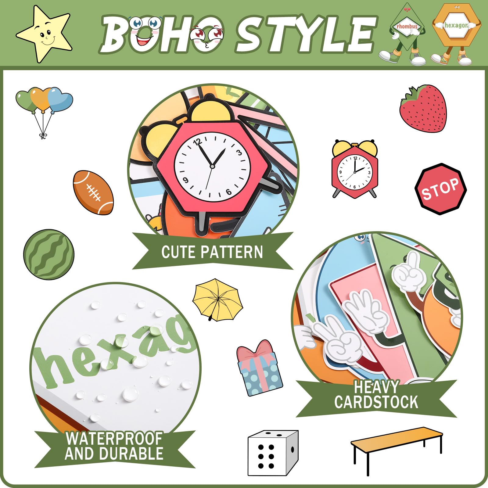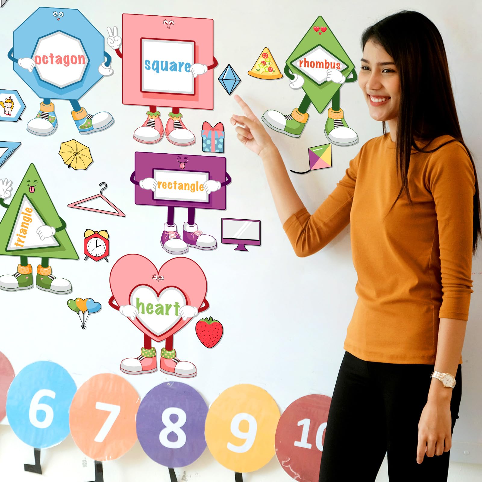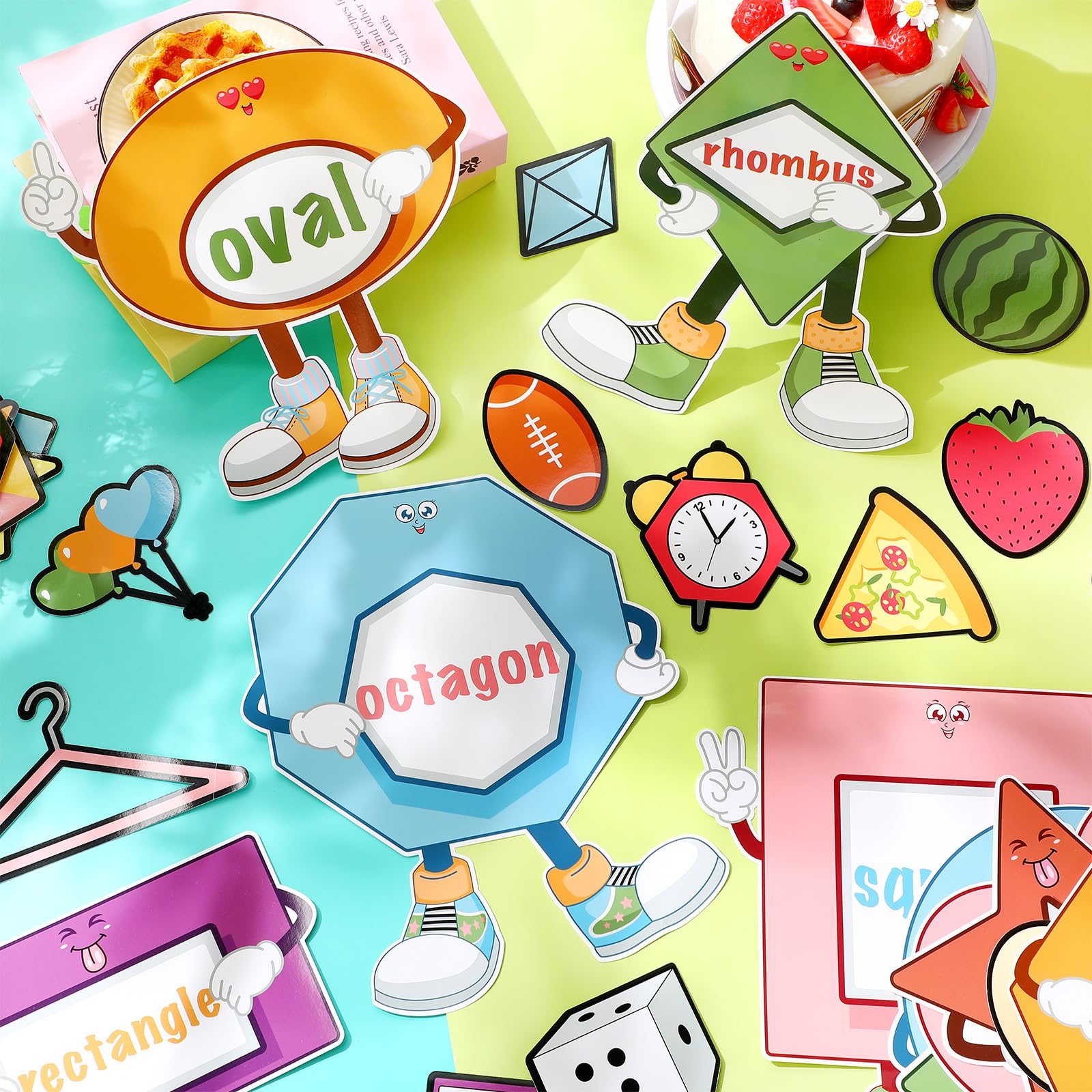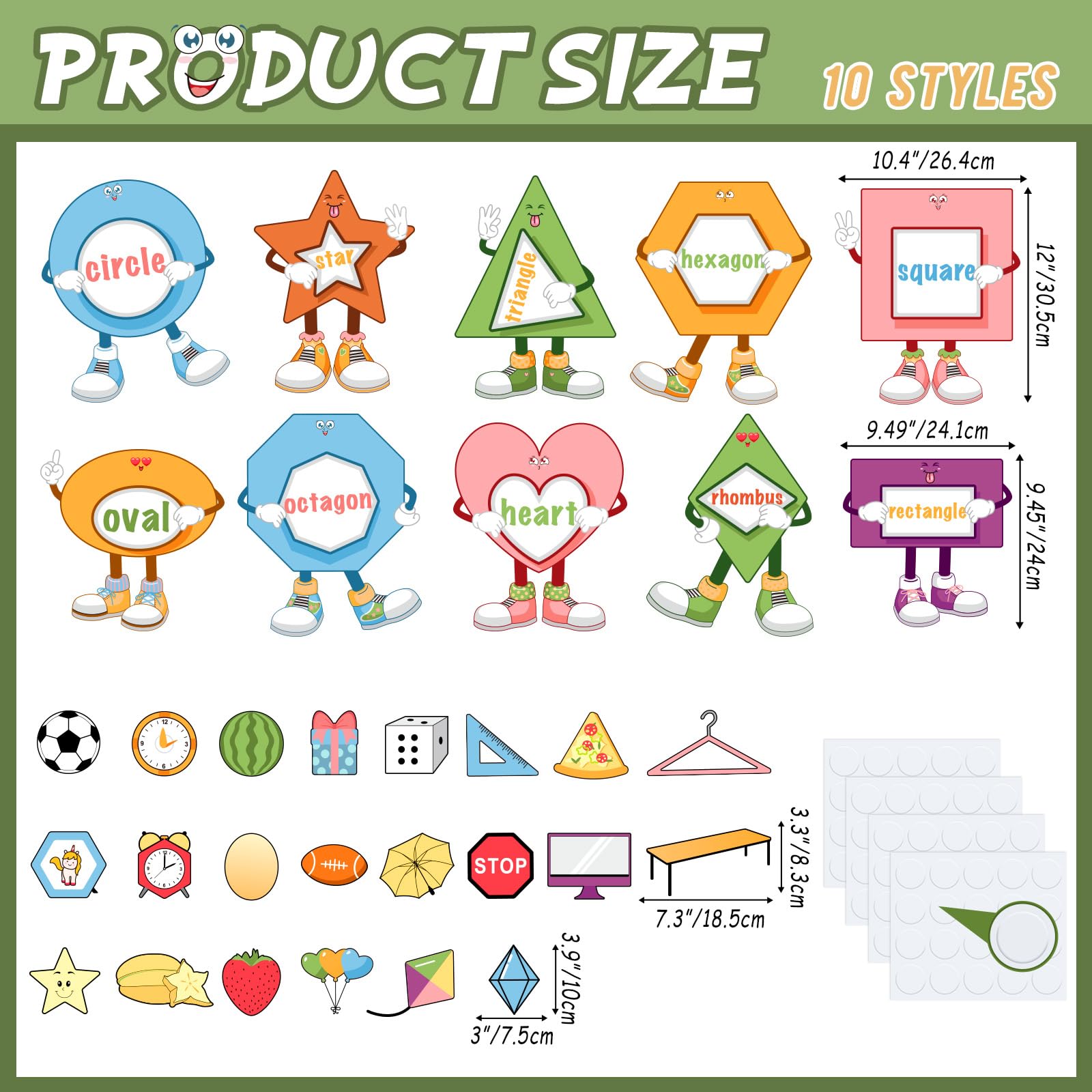 What you will get: comes with 10 shapes posters, 22 pieces of shapes accents like vivid familiar objects, and 80 pieces adhesive glue point dots; 10 Shapes posters include circle, triangle, hexagon, oval, octagon, rectangle, rhombus, star, heart, etc.