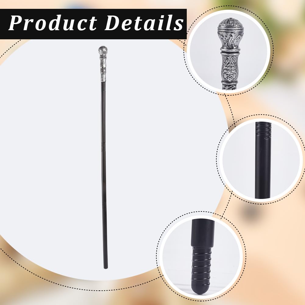Antique Cane: You will receive 1 set of black pimp stick cane with silver copper color ball top, which contains 3pcs of plastic sticks, 1 handle top, can be easily assembled into a whole