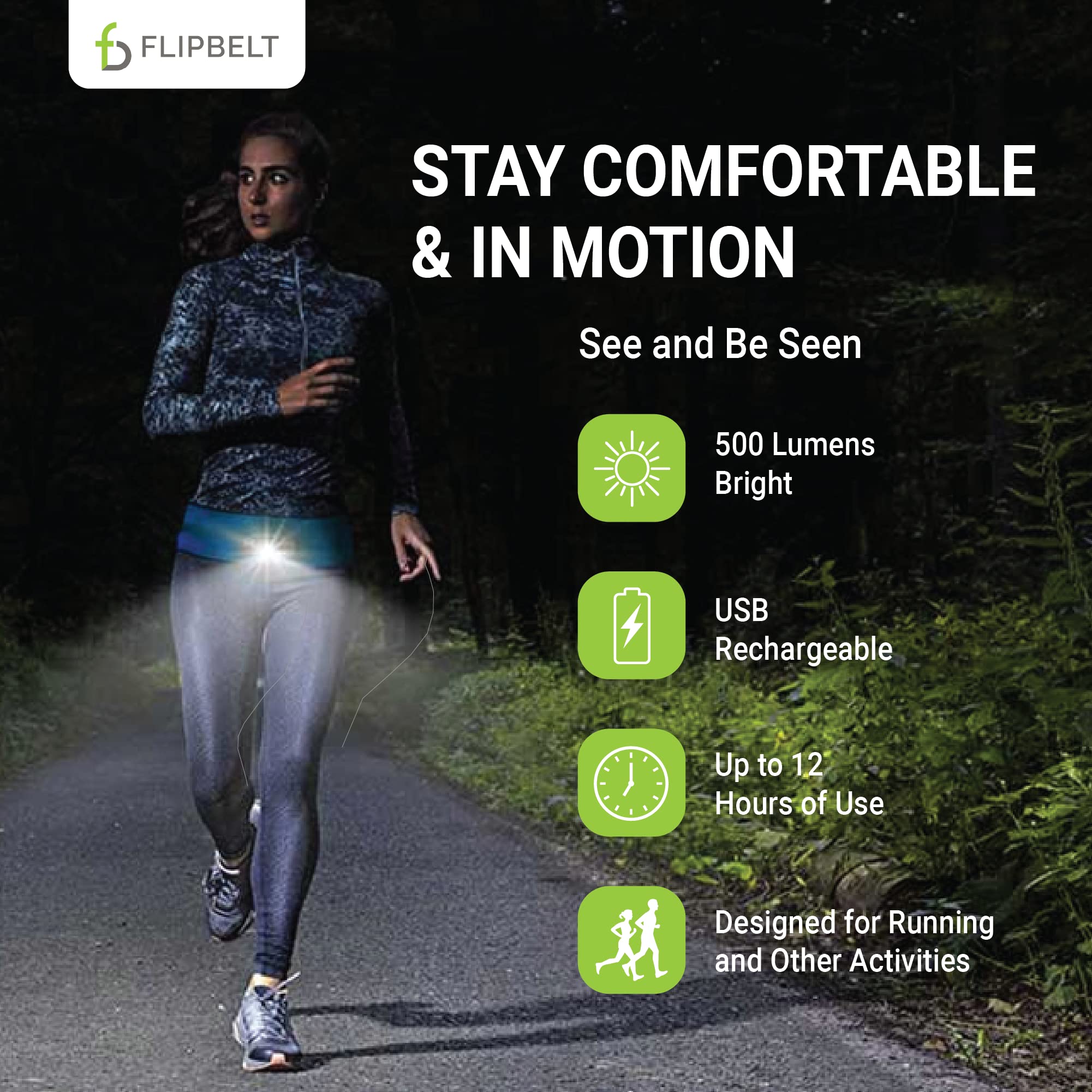 HANDS-FREE ILLUMINATION: The FlipBelt running light was made for improved hands-free flashlight use. This running waist light goes on the front of your hips, casting light at a lower angle than headlamps to help you see the ground more easily. This reduces reflecting glares and unwanted bouncing.