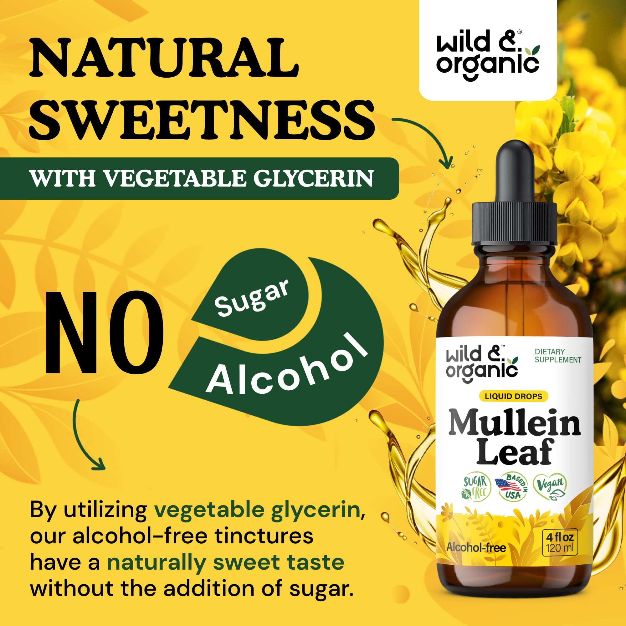 Sweetness Without Sugar: Enjoy a pleasant supplement experience with Wild & Organic mullein extract for lungs, which features a naturally sweet taste. Our mullein drops use glycerin for natural sweetness, with no added sugar.