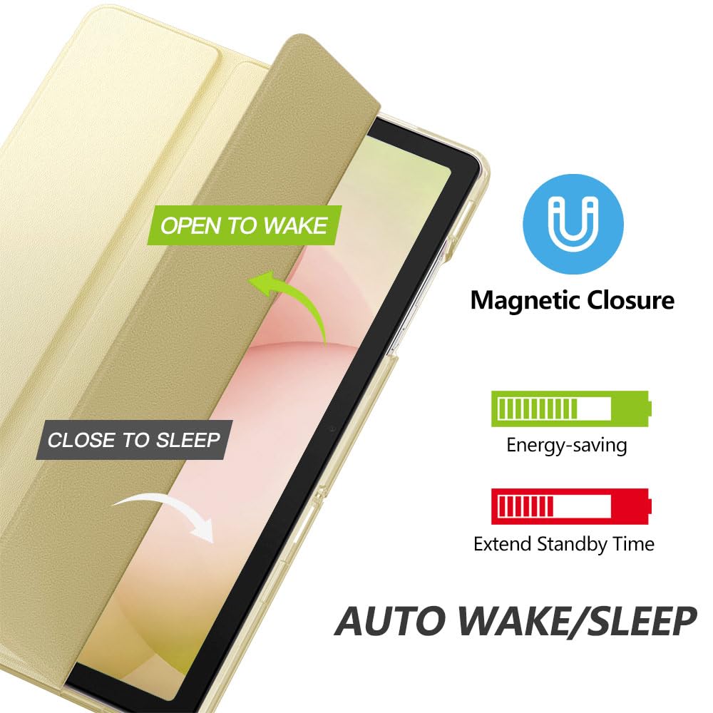 Auto Wake/Sleep: Built-in magnetic strip, automatically wakes or puts your tablet to sleep when the lid is opened and closed. This Galaxy Tab A11+/A9+ Case Protects and extends battery life