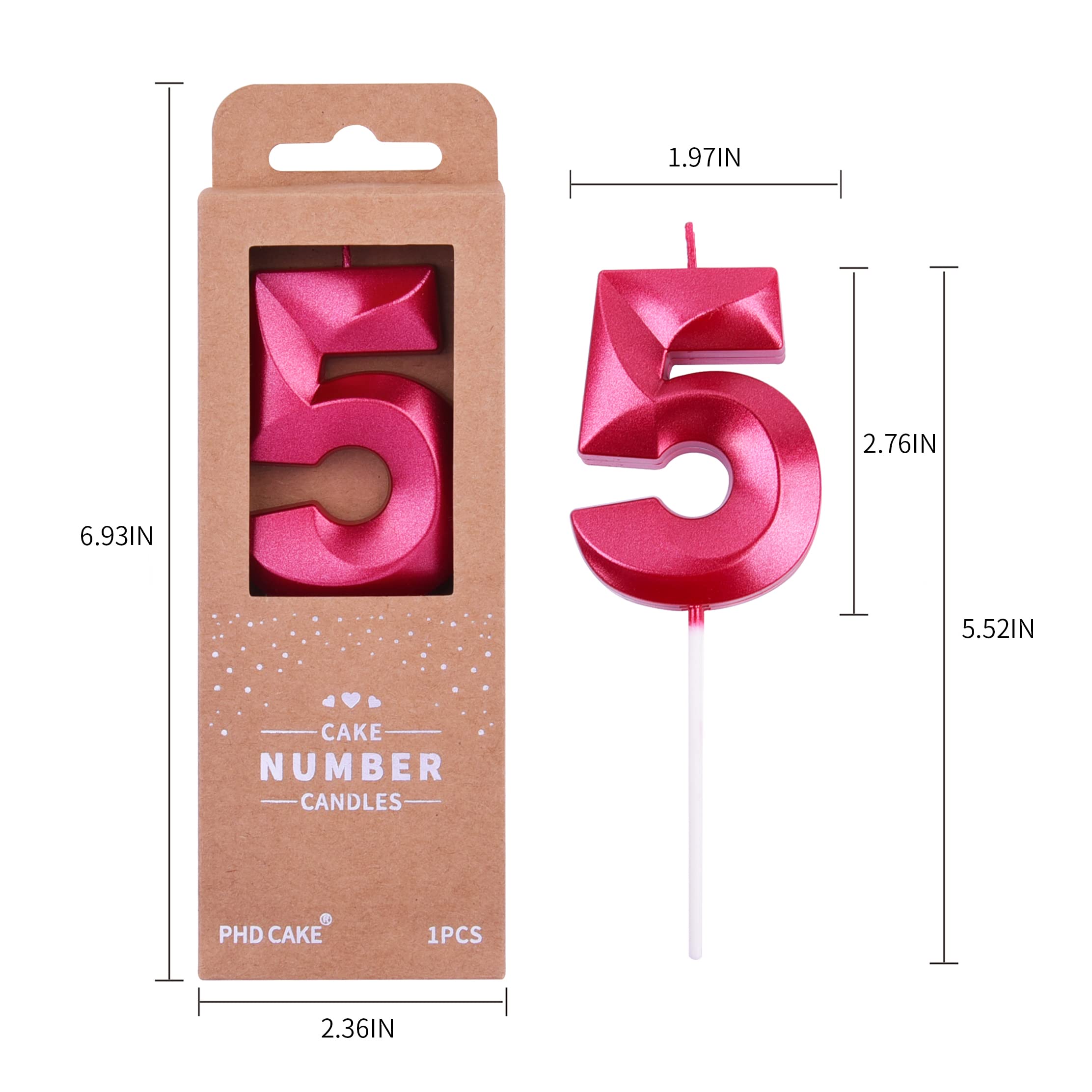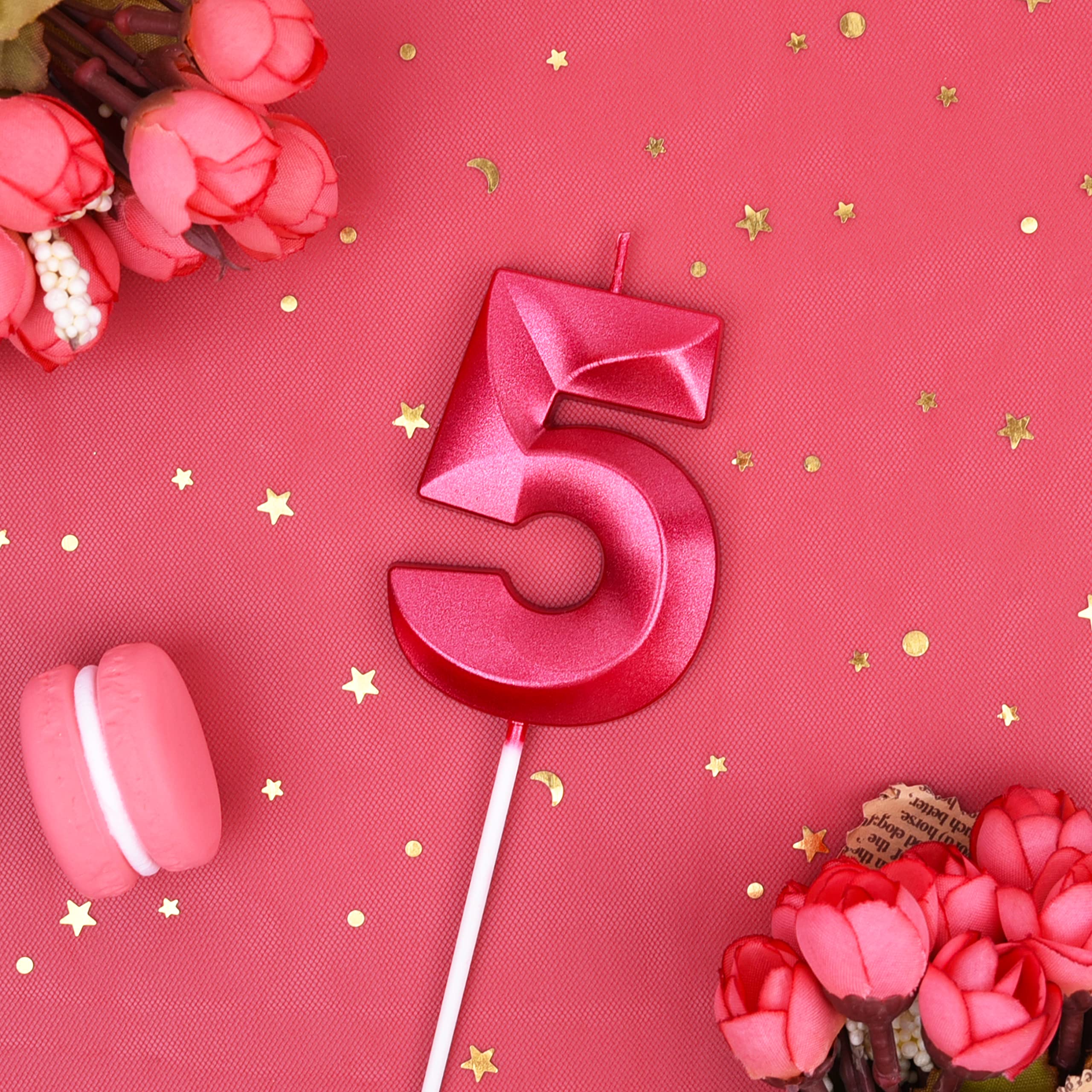 New: 2.76 Inch Large Diamond Red 5 Number Birthday Candle designed to make your cake and birthday a unique and truly inspiring event.