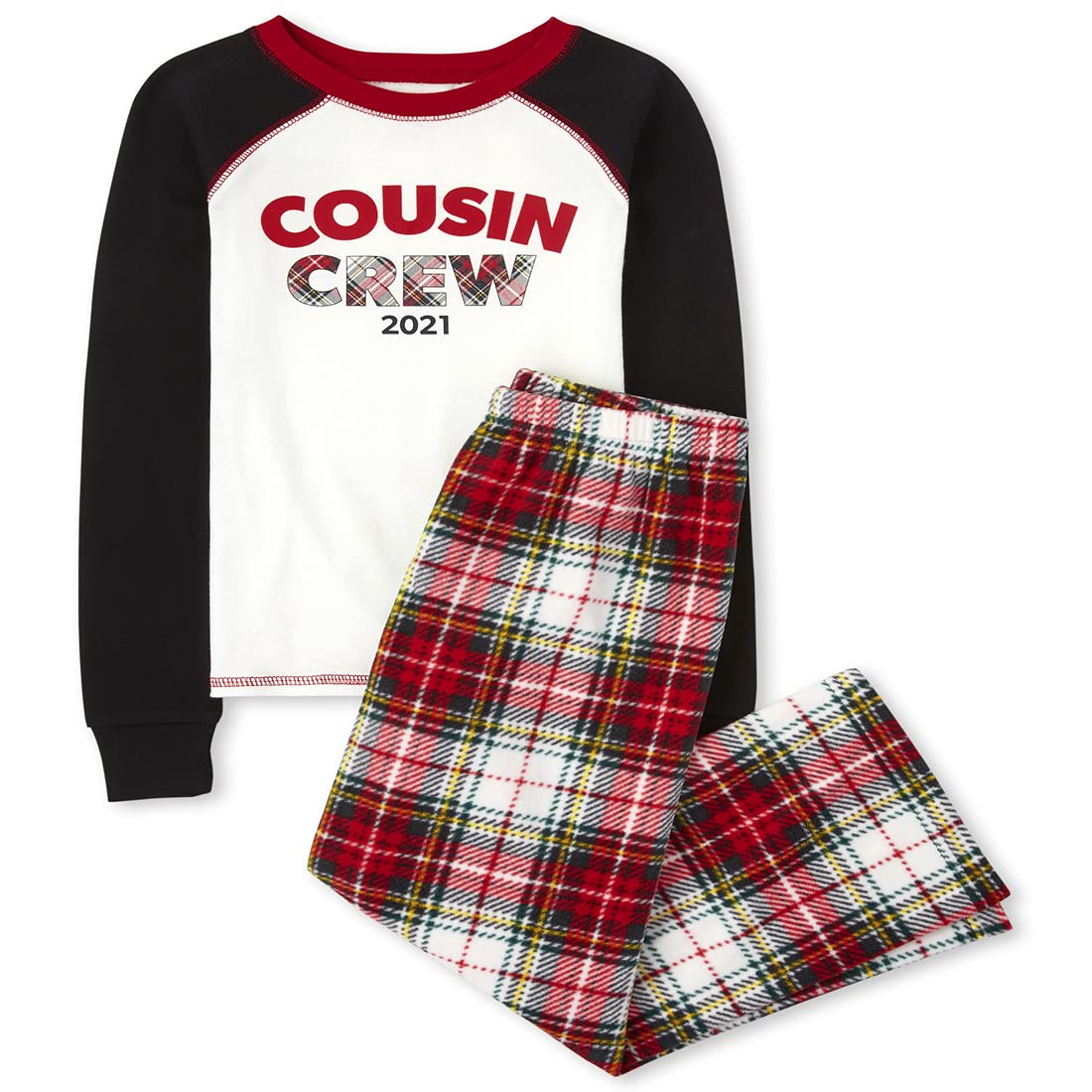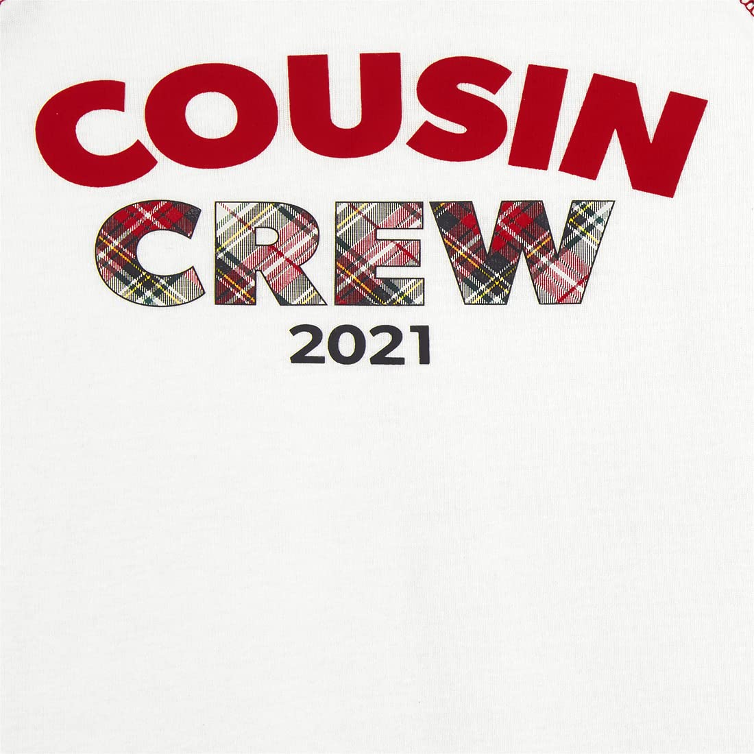 Top features 'Cousin crew 2021' graphic design at front; styled with rib-knit crew neck and sleeve cuffs