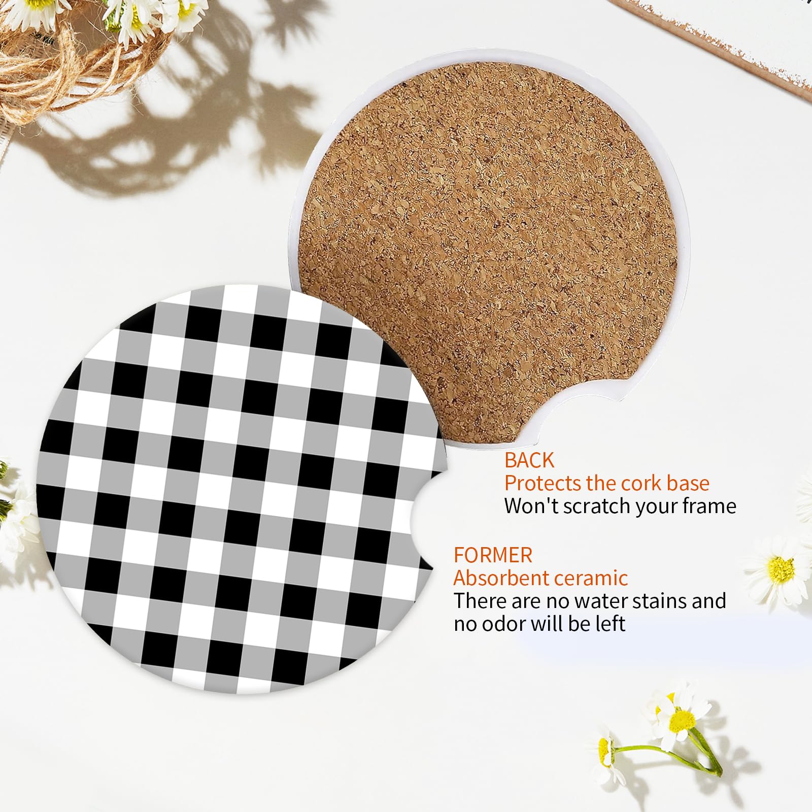 【High Quality Material】This car coaster is made of strong absorbent ceramic that can easily absorb the water drops outside the cup.(Set of 2)