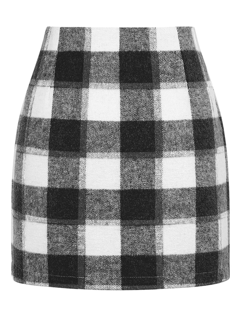 Style: Casual slim fit bodycon flannel plaid mini skirts for junior/lady
