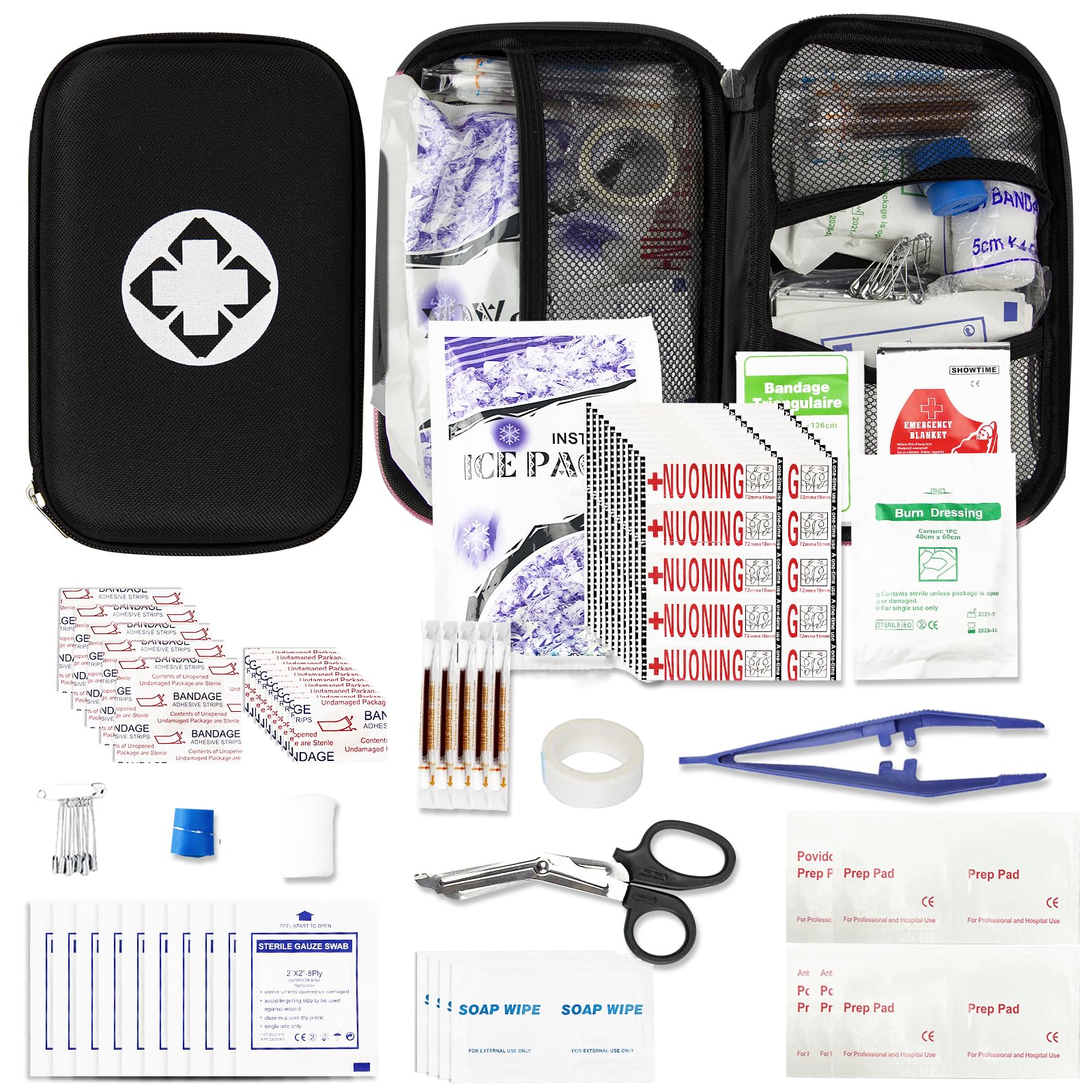 Outdoor Basic Emergency Supplies๐๐ With items such as scissors, cold pack, safety pins, bandaids, first aid tape and emergency blanket, our first aid kits are excellent camping accessories and one of your travel essentials. They are the ideal survival kit for hiking and exploring, but they can be just as useful as survival gear at home or in the office