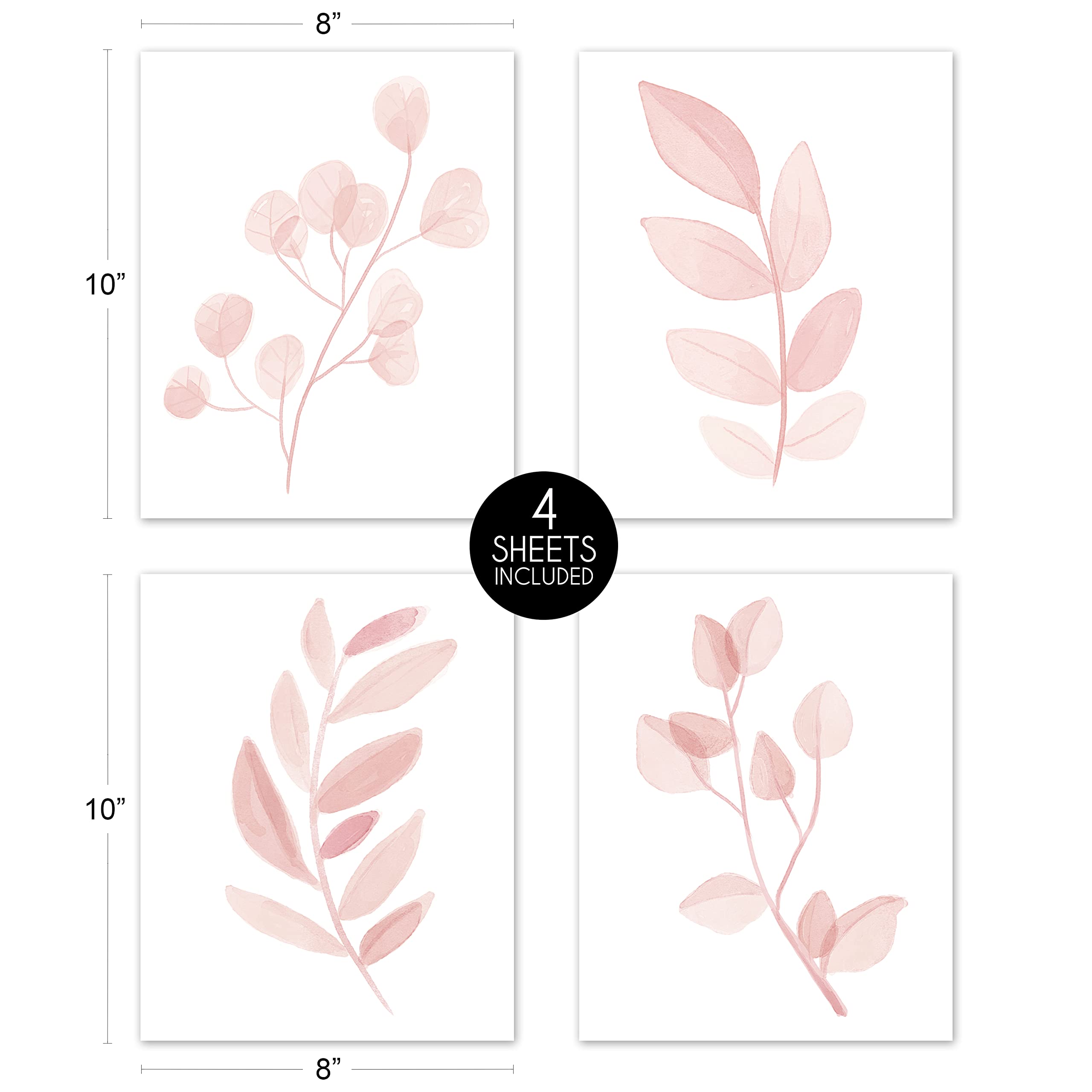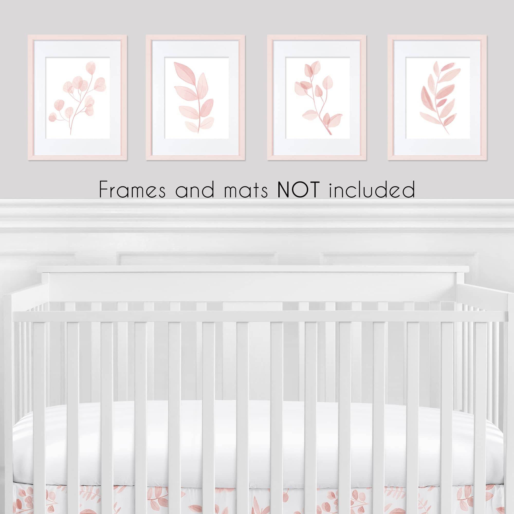 Decorative wall art print set features single blush pink and white botanical boho chic watercolor bohemian woodland floral leaf flowers