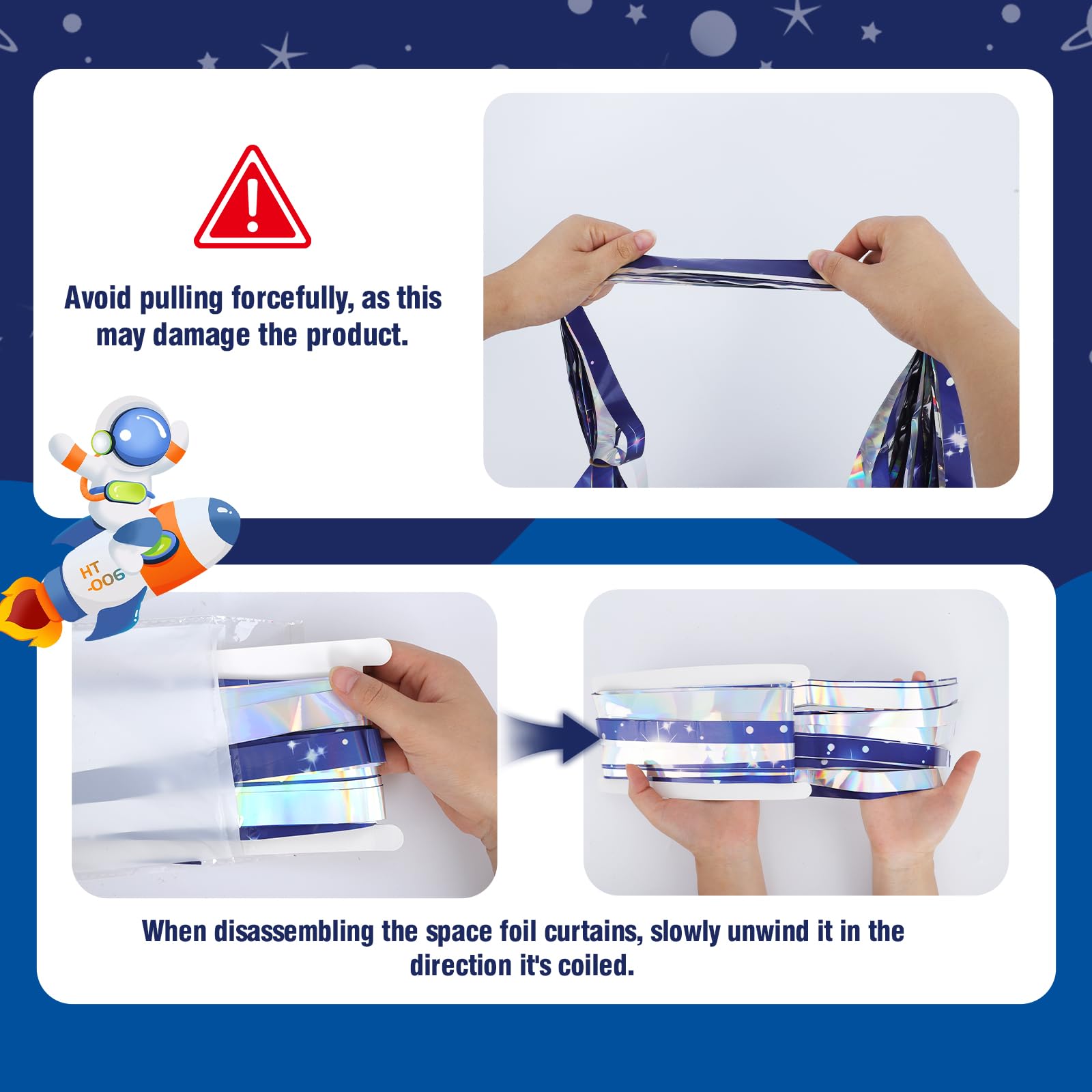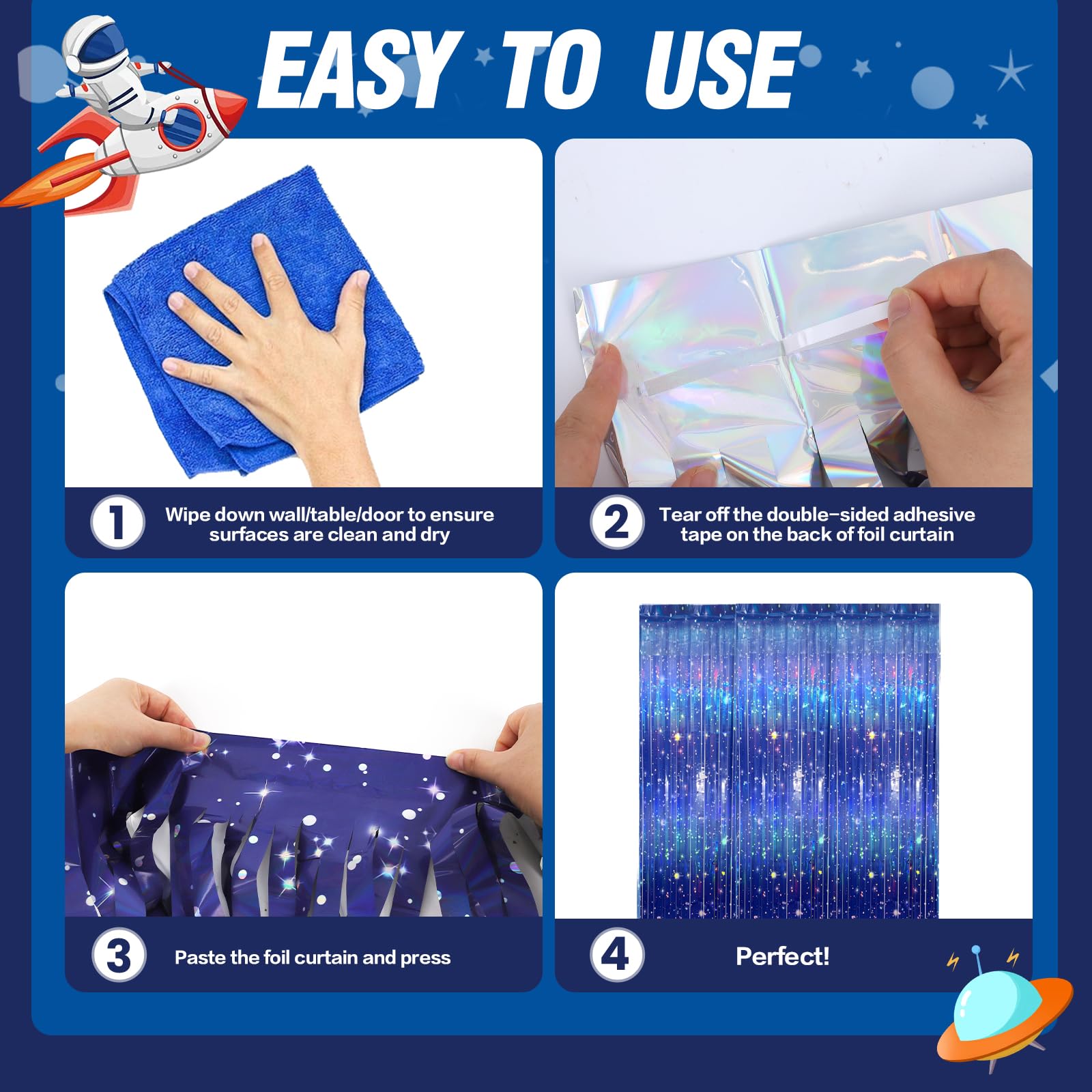 Durable, Reusable Foil Fringe: Made with reinforced metallic tinsel that resists tearing and shedding—no more flimsy curtains that fall mid‑party; ideal for Galaxy party decorations and repeat events